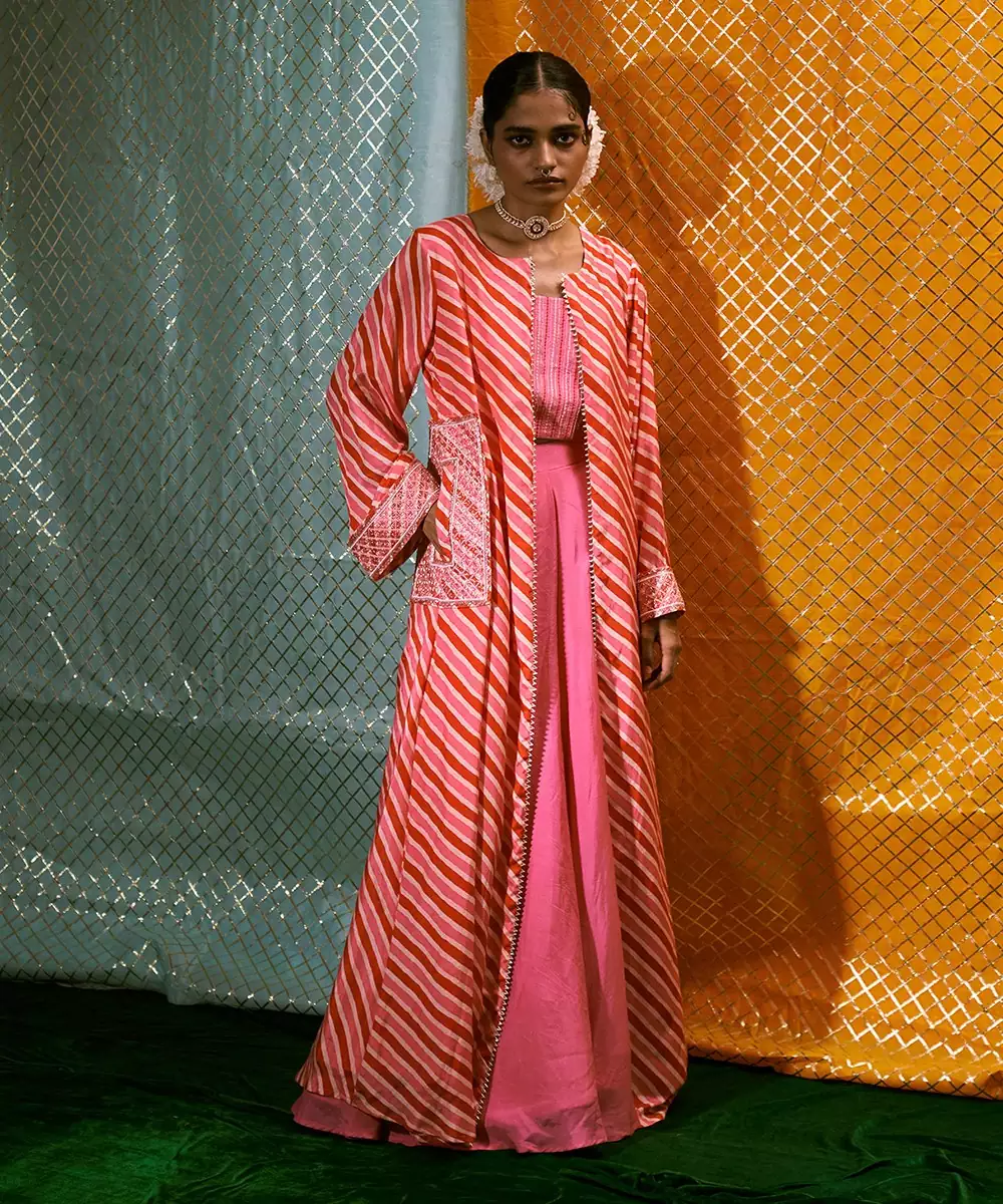 Masoom Bustier + Gharara + Laheriya Pakistani Jacket .