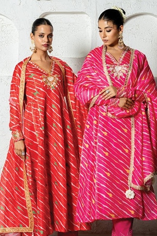Pink Embroidered Mirror Work Georgette Yasir Kurta (Rani Pink)