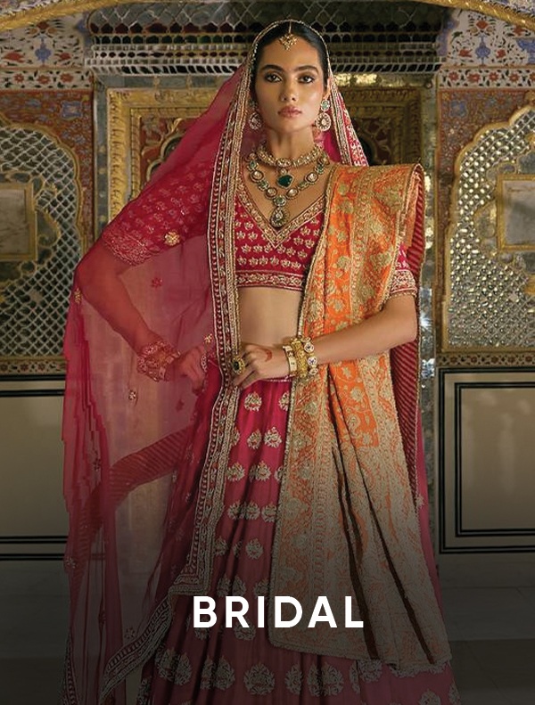 Peach Blouse With Peach And Navy Blue Ombre Saree