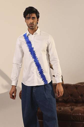Step Into A World Where Style Knows No Bounds With This Flamboyant Shirt. Set Against A Backdrop Of Deep Navy Blue, This Shirt Exudes An Air Of Sophistication With A Dash Of Daring. The Front Showcases A Electrifying Orange, Cleverly Designed In The Form Of A Torn Fishnet. The Result? A Visual Masterpiece That's Full Of Suspense And Drama, Making It The Ultimate Choice For Your Next Party Escapade