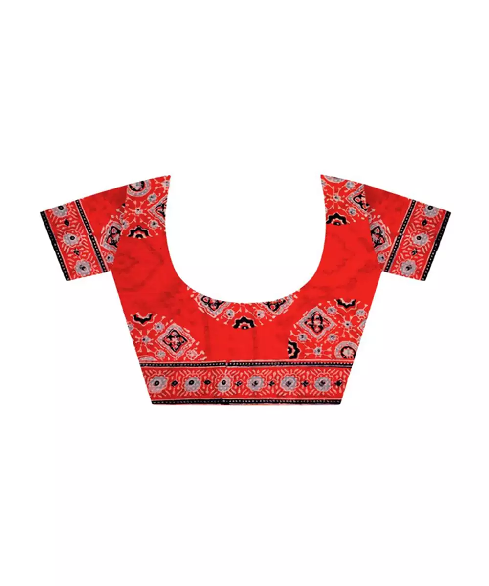 Hand Block Print Ajrakh On Cotton, Ethnic Motifs, Uses Vegetable Dyes