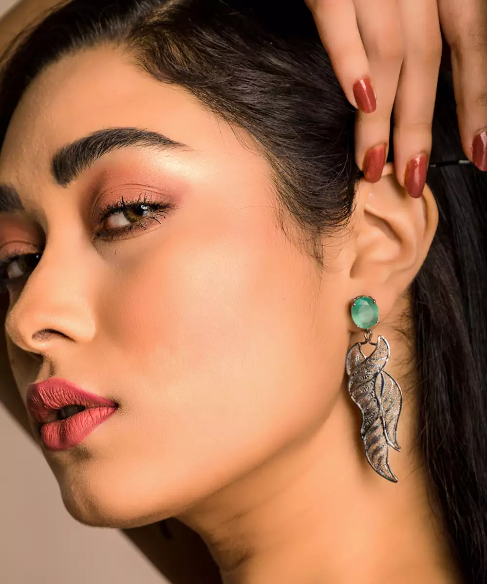 Wave Silver Filigree Dangler Earring Beautifully Handcrafted In Oxidised 92.5 Sterling Silver With Pastel Seagreen Chalcedony