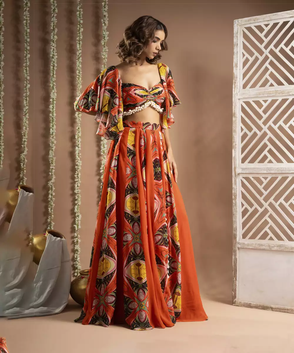 Comes With A Double Panel Skirt With A Cutwork Belt And A Slit Which Is Also Completed With Kaudi Hangings All Over The Slit To Give It A More Heavy Look.
