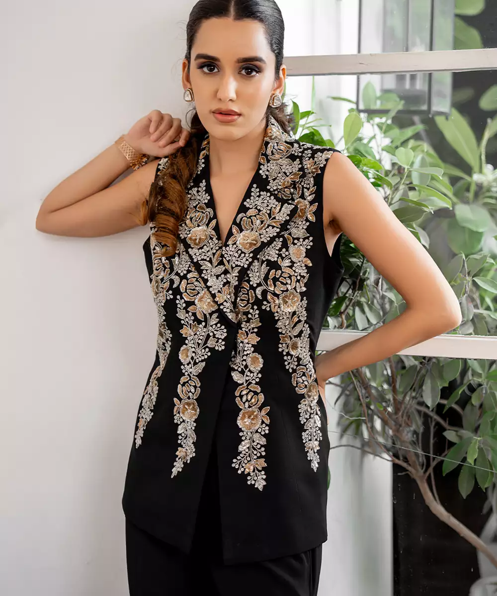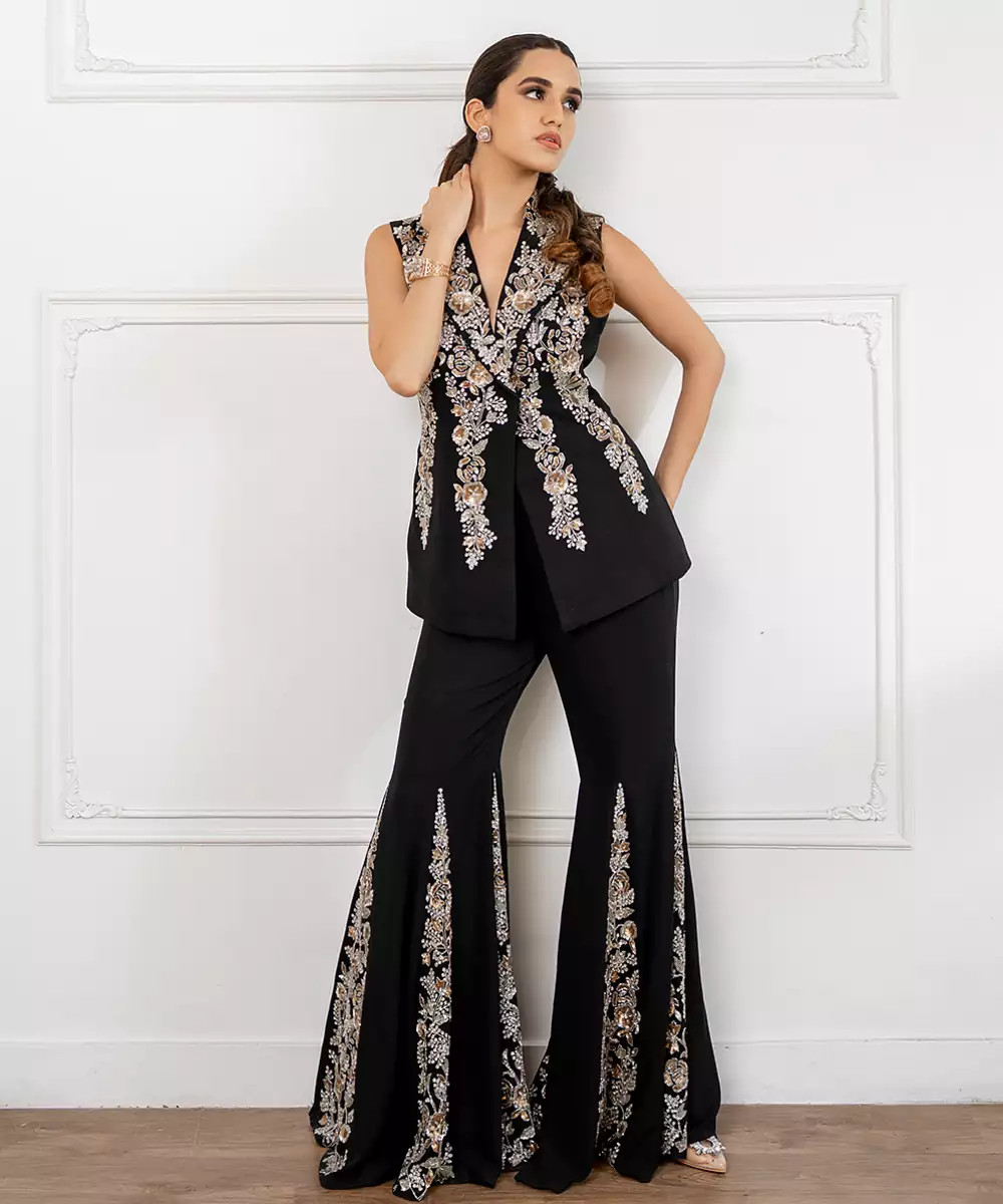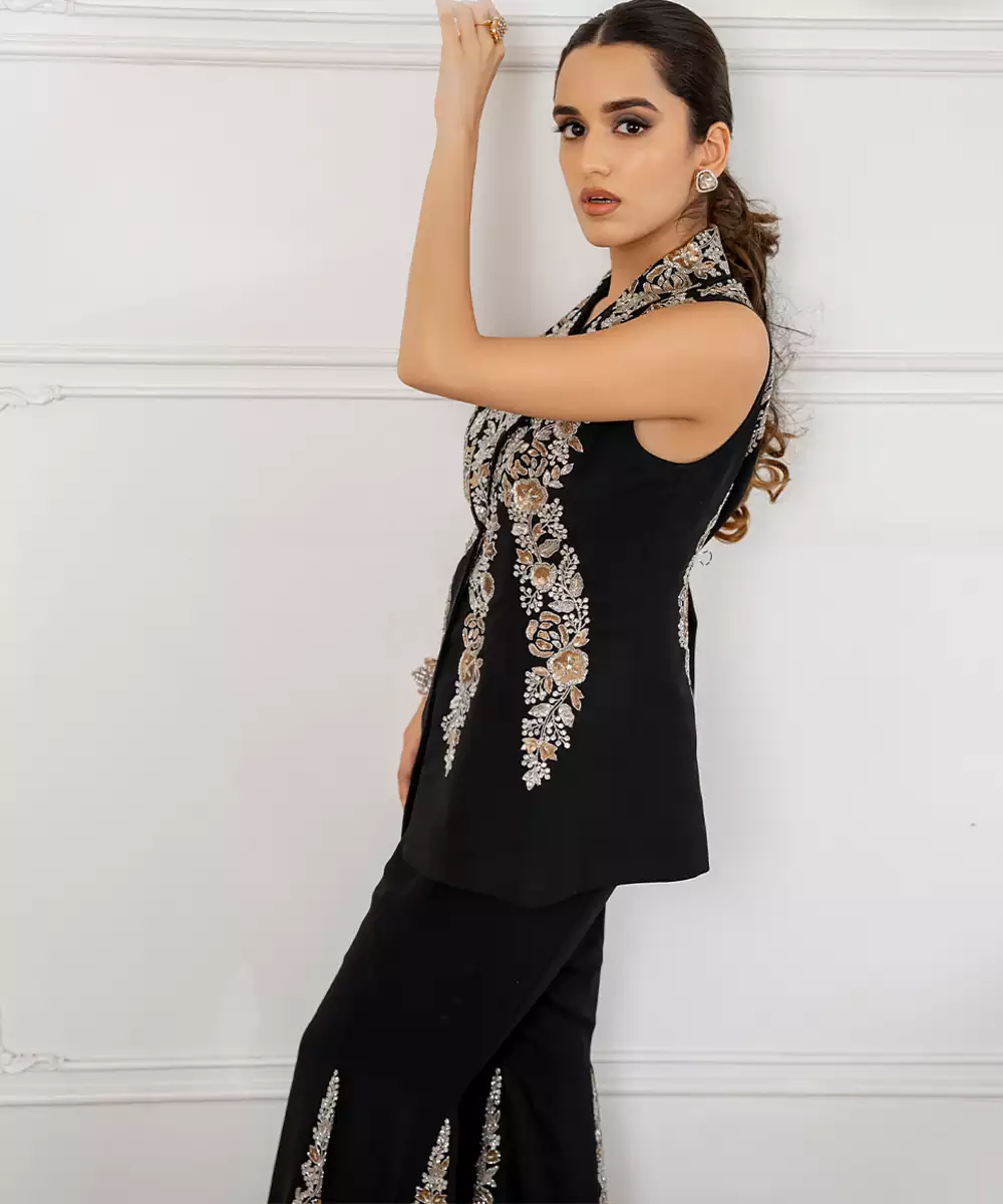 This Black Embroidered Georgette Co Ord Set Blends Sophistication With Modern Charm. Crafted From Lightweight Georgette, It Features Delicate Embroidery That Elevates Its Festive Appeal. The Coordinated Top And Bottoms Offer A Stylish, Effortless Look Suitable For Events, Celebrations, And Special Occasions. Perfect For Those Seeking Comfort, Elegance, And Contemporary Ethnic Flair.