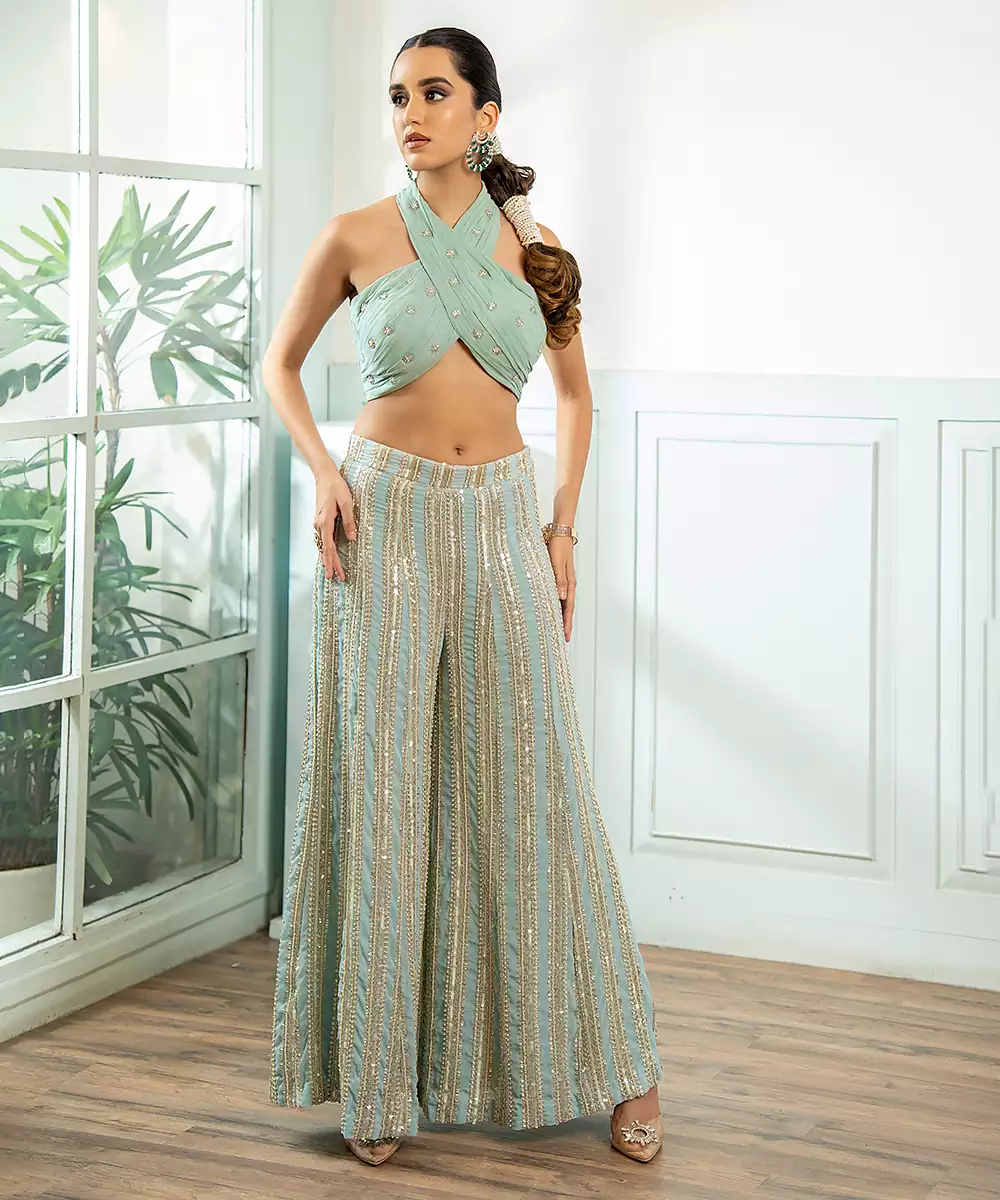 This Green Embroidered Georgette Co Ord Set Blends Sophistication With Modern Charm. Crafted From Lightweight Georgette, It Features Delicate Embroidery That Elevates Its Festive Appeal. The Coordinated Top And Bottoms Offer A Stylish, Effortless Look Suitable For Events, Celebrations, And Special Occasions. Perfect For Those Seeking Comfort, Elegance, And Contemporary Ethnic Flair.