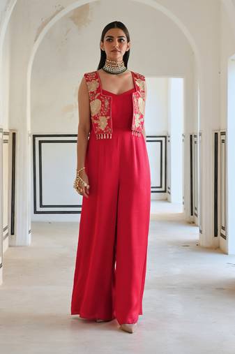 Evergreen Satin Hand Block Printed Jumpsuit For Women