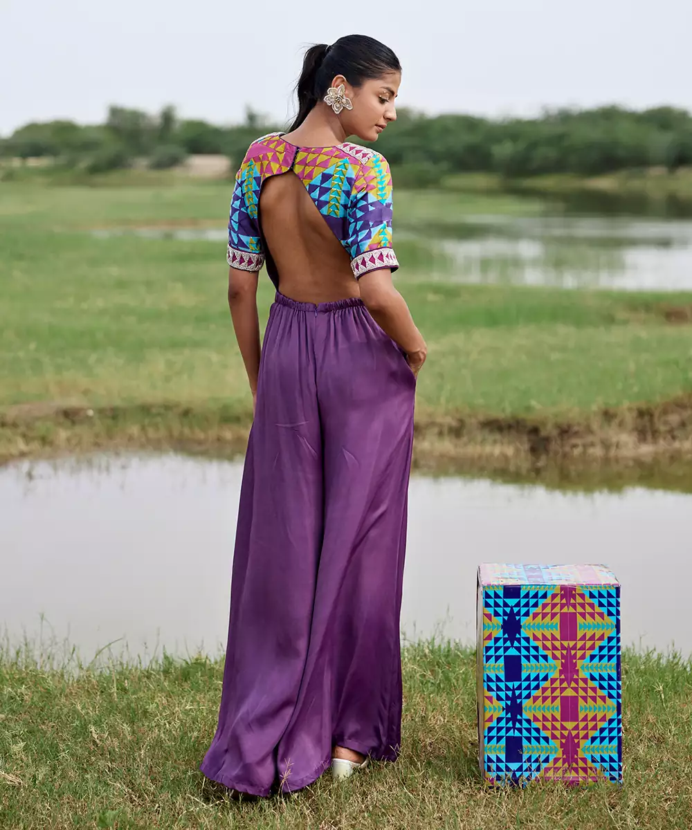 Jumpsuit With Delicate Embroidery On Shoulders And Arms Along With A Cut Out Detail On Waist