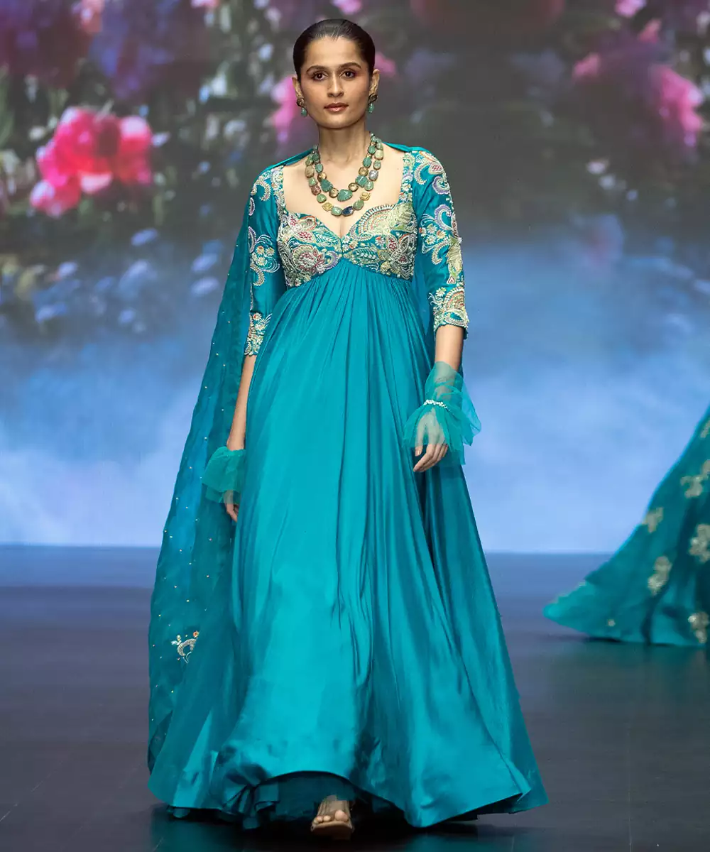 Radiate Grace In This Blue Embroidered Raw Silk Anarkali Set, A Perfect Fusion Of Tradition And Elegance. Crafted From Premium Raw Silk, It Features Intricate Embroidery That Enhances Its Festive And Regal Appeal. Paired With A Matching Dupatta, This Ensemble Is Ideal For Weddings, Celebrations, And Special Festive Occasions.