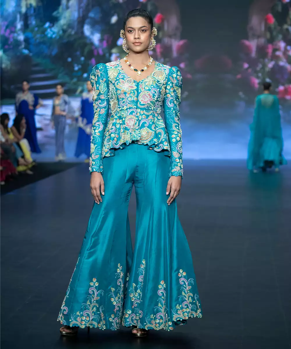 Embrace Elegance With This Blue Embroidered Raw Silk Sharara Set, Crafted For A Perfect Blend Of Tradition And Style. Made From Premium Raw Silk, It Features Intricate Embroidery That Adds A Festive And Regal Touch. Complete With A Matching Kurta And Dupatta, This Set Is Ideal For Weddings And Celebrations.