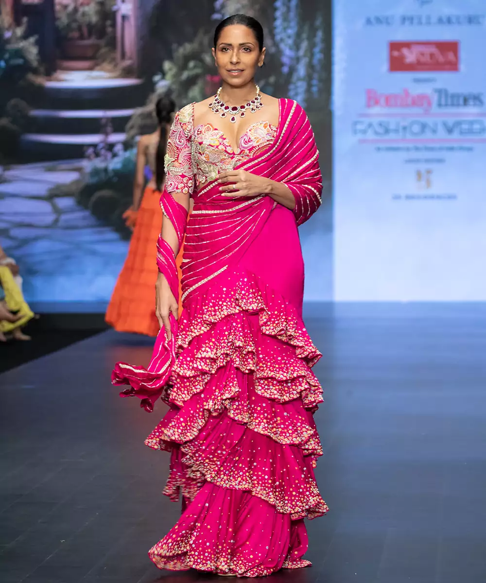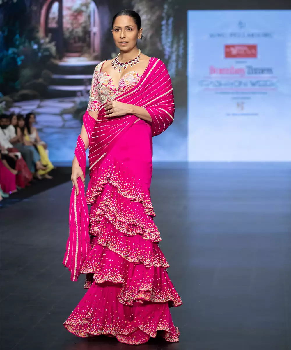 Radiate Bold Elegance In This Hot Pink Embroidered Raw Silk Saree, Crafted With A Rich Texture And Luxurious Sheen. Intricate Embroidery Enhances Its Festive Charm, While The Fluid Drape Ensures Graceful Movement. Paired With A Matching Blouse, It Is Perfect For Weddings, Parties, And Celebratory Occasions And Evening Events Too.