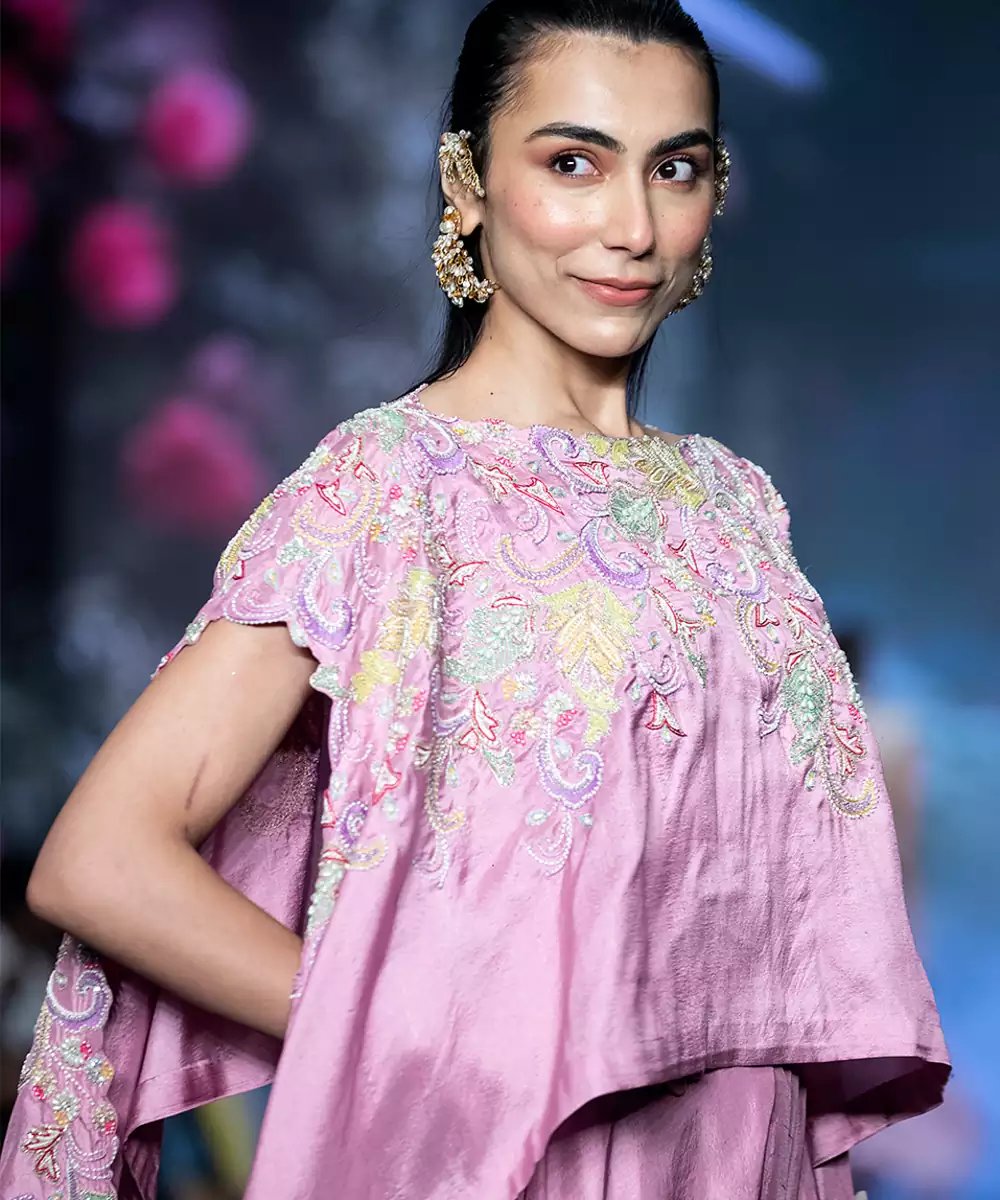 Delight In The Elegance Of This Pink Embroidered Pure Silk Co Ord Set, Crafted To Blend Tradition With Contemporary Style. Made From Luxurious Pure Silk, It Features Intricate Embroidery That Adds A Festive And Graceful Touch. Perfect For Weddings, Celebrations, Or Special Occasions, This Set Radiates Charm, Sophistication, And Timeless Beauty.