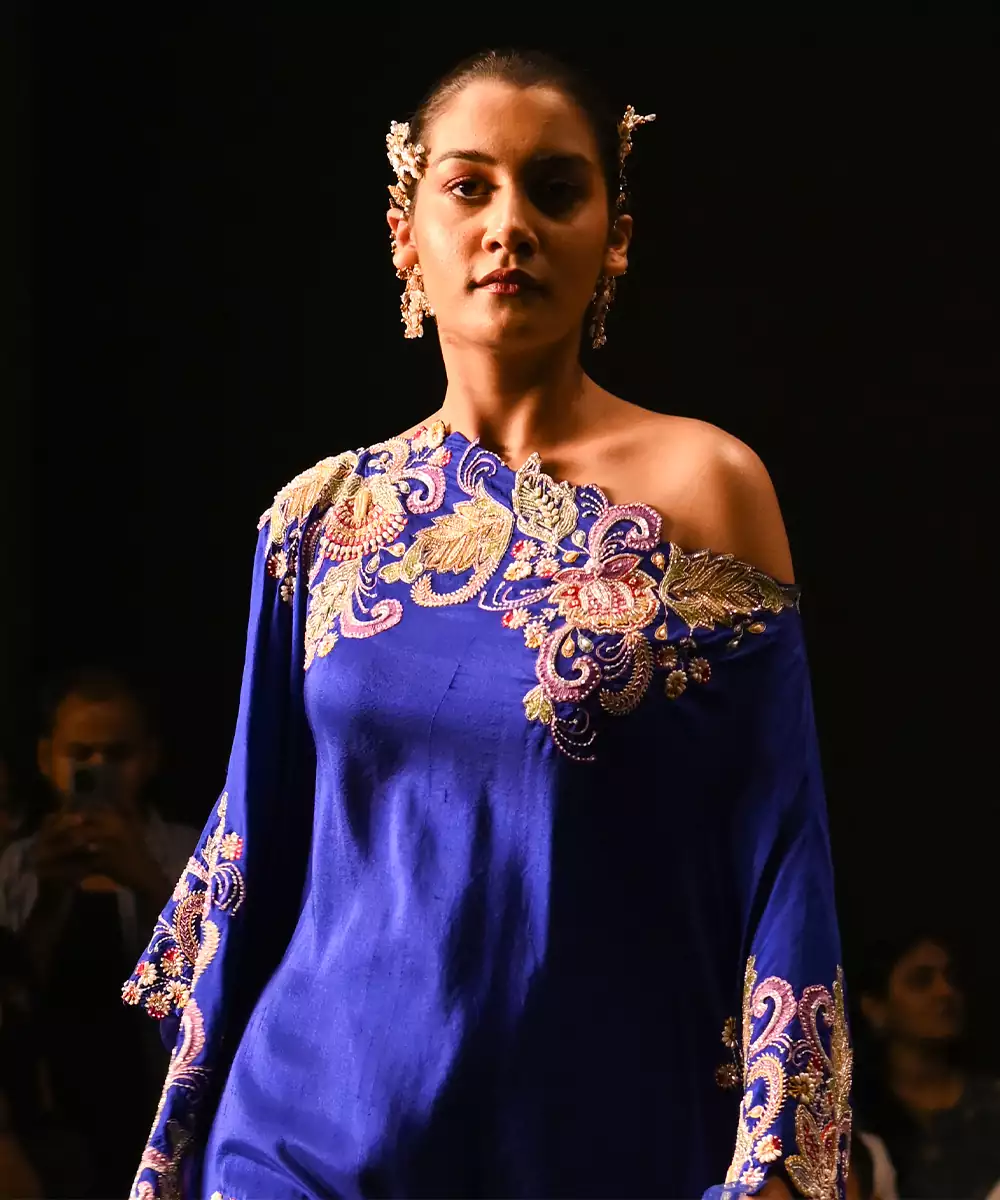 Exude Regal Elegance With This Royal Blue Embroidered Pure Silk Kaftan Set. Crafted From Luxurious Pure Silk, It Features Intricate Embroidery That Enhances Its Sophisticated Appeal. Perfect For Festive Occasions, Weddings, Or Evening Events, This Kaftan Set Combines Traditional Charm With Contemporary Style, Offering Unmatched Grace And Timeless Beauty.