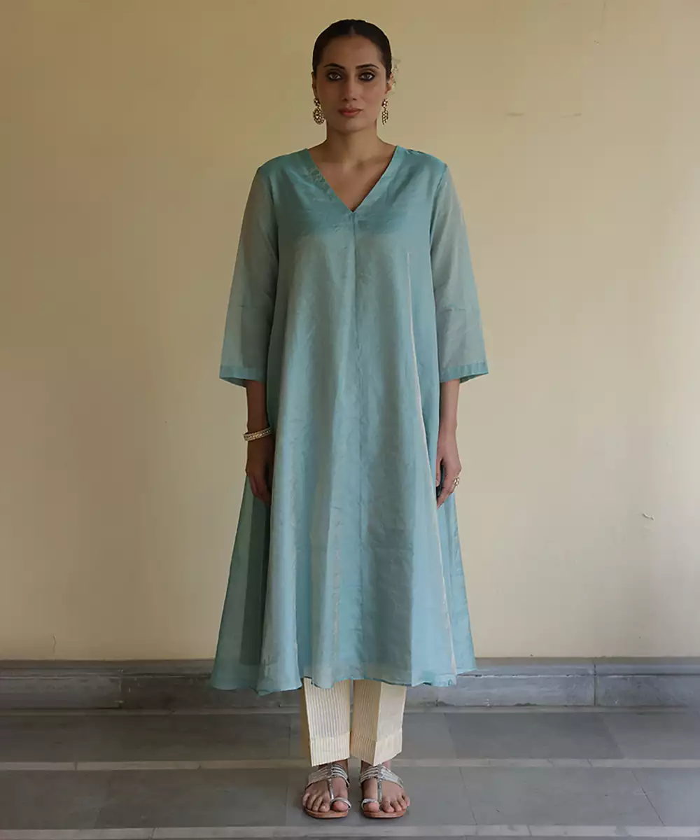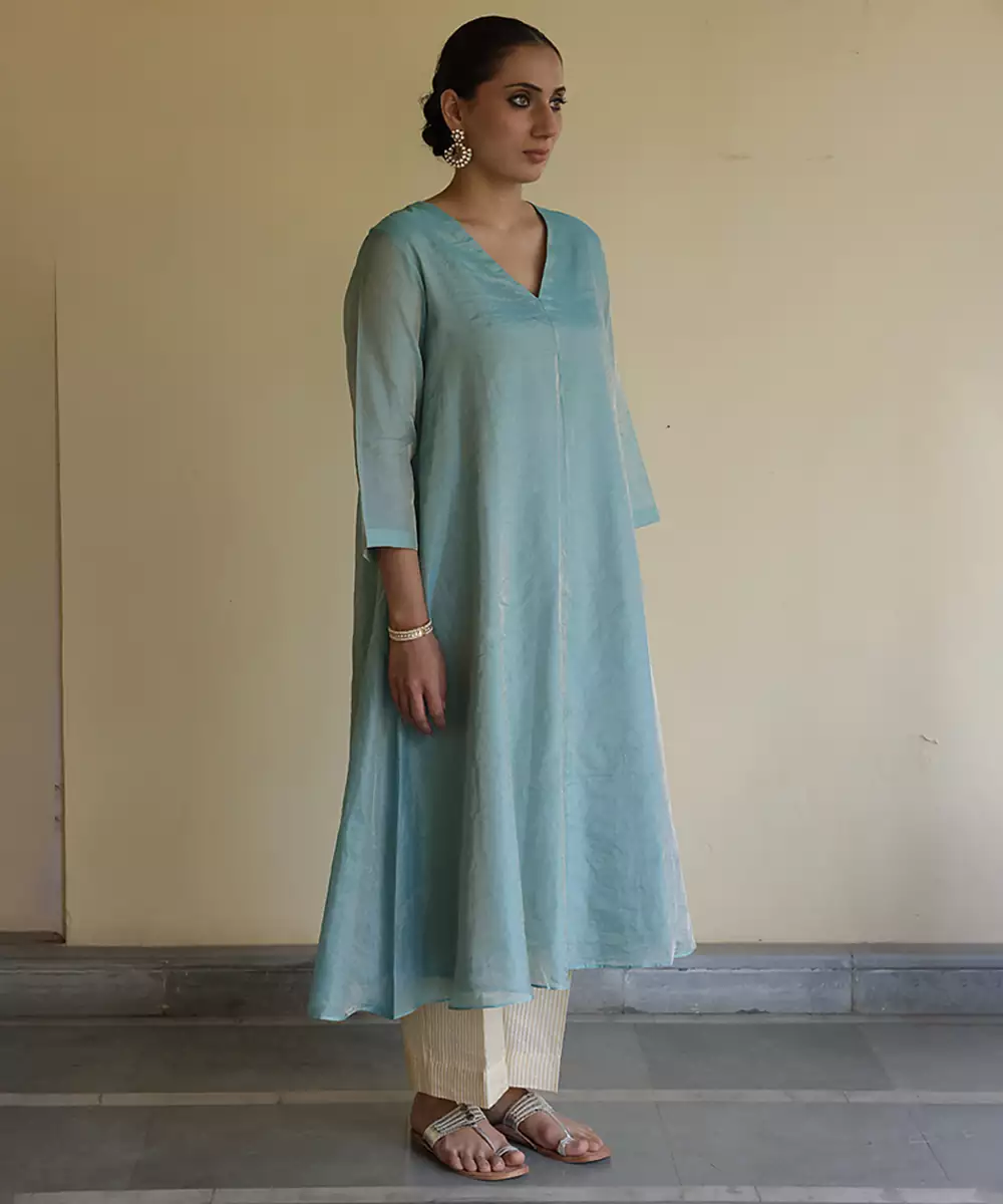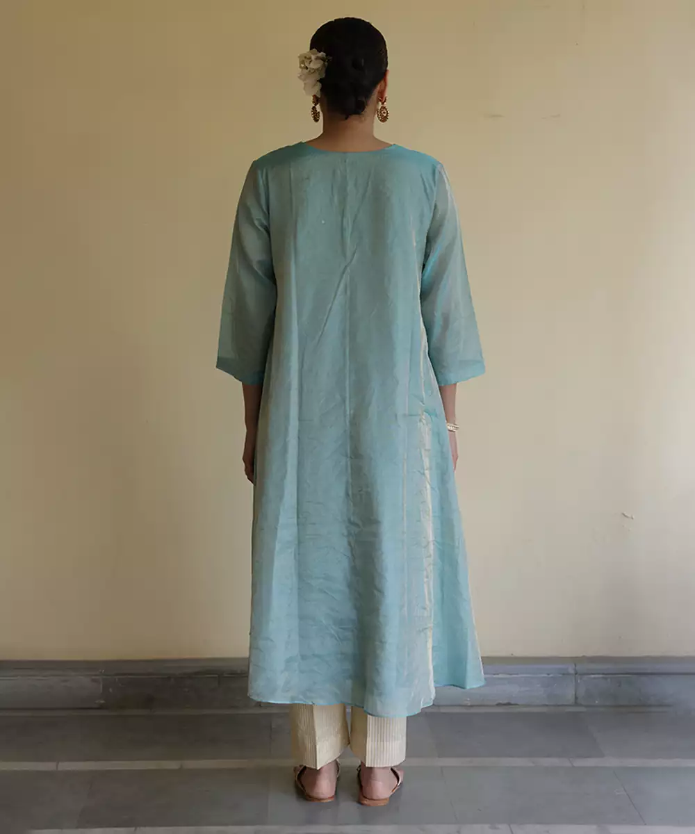 A Sophisticated Blue Tissue Kurta Set Crafted For An Elegant Festive Appearance. The Lightweight Fabric Provides A Soft Shimmer And Structured Drape, Creating A Refined Silhouette. Ideal For Celebrations And Formal Ethnic Occasions, It Balances Contemporary Style With Understated Traditional Charm.