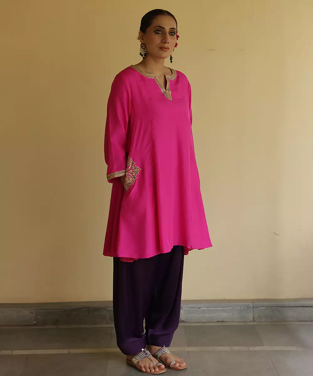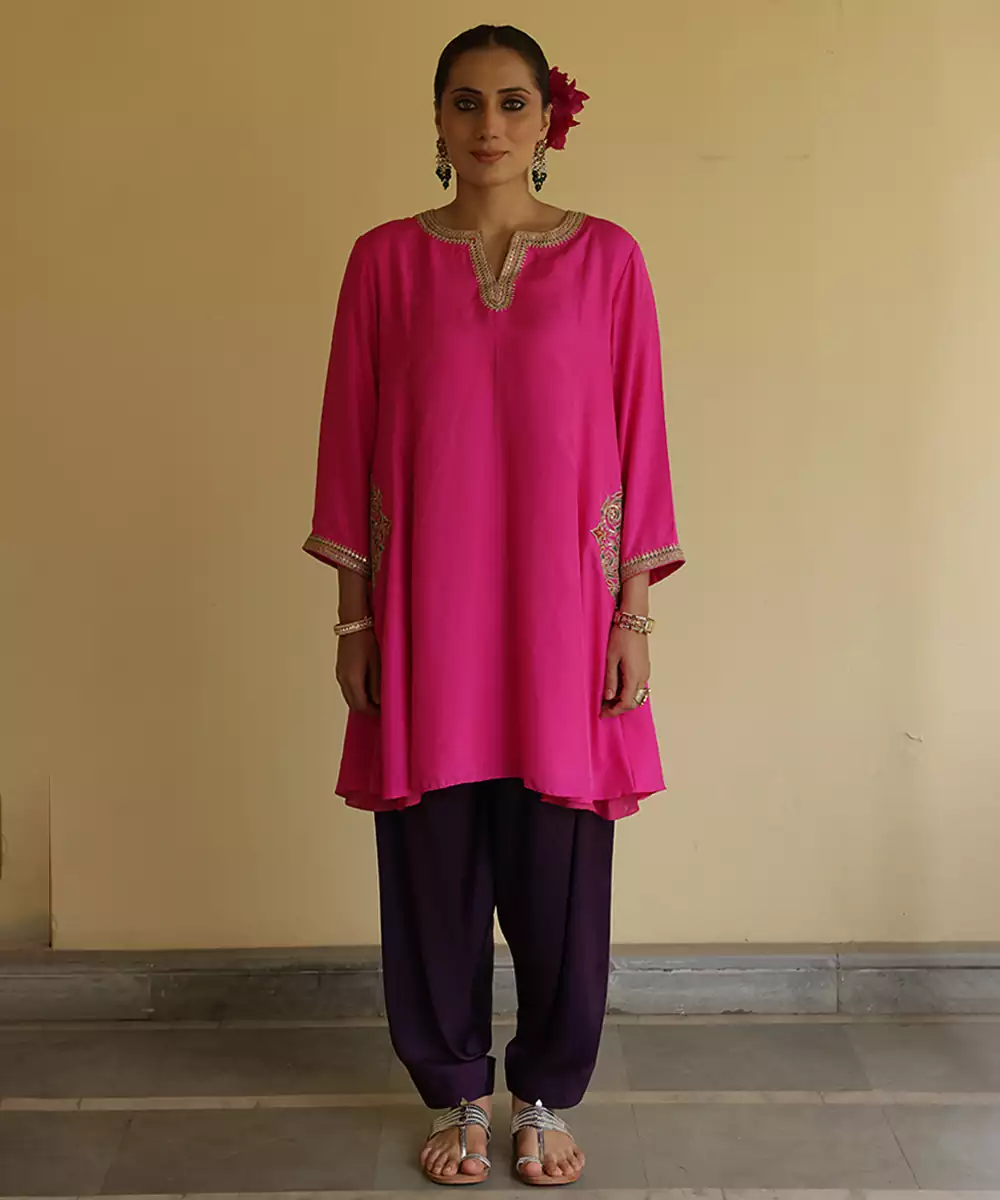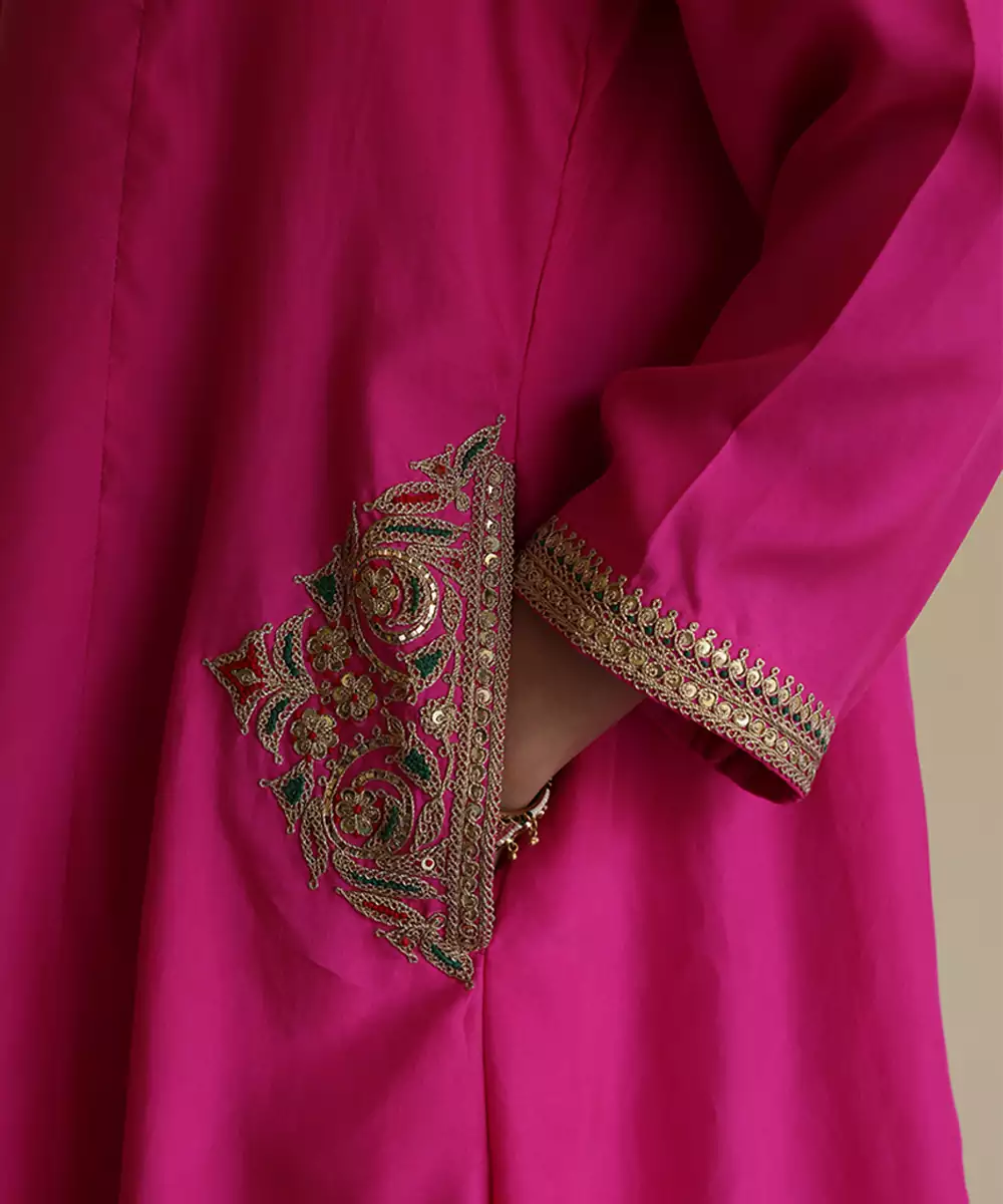 Radiating Feminine Charm, This Pink Embroidered Silk Kurta Set Features Intricate Embellishments On Rich Silk Fabric. Designed For Comfort And Style, It Offers A Refined Look Suitable For Weddings And Festive Occasions. The Soft Hue Paired With Detailed Embroidery Ensures Graceful Sophistication.