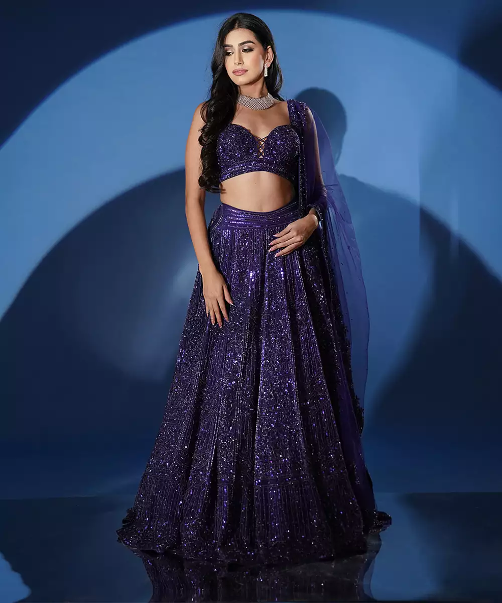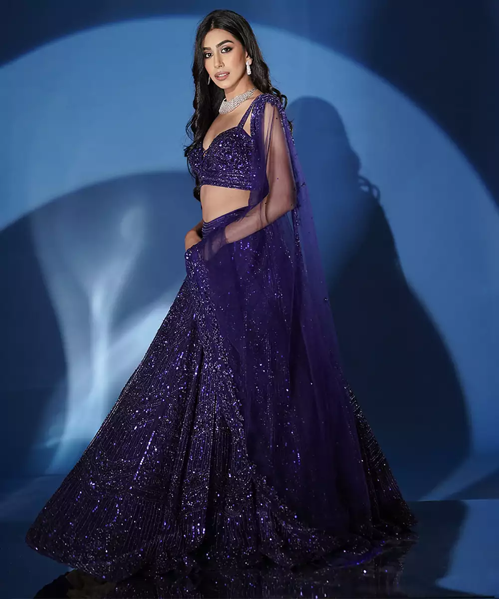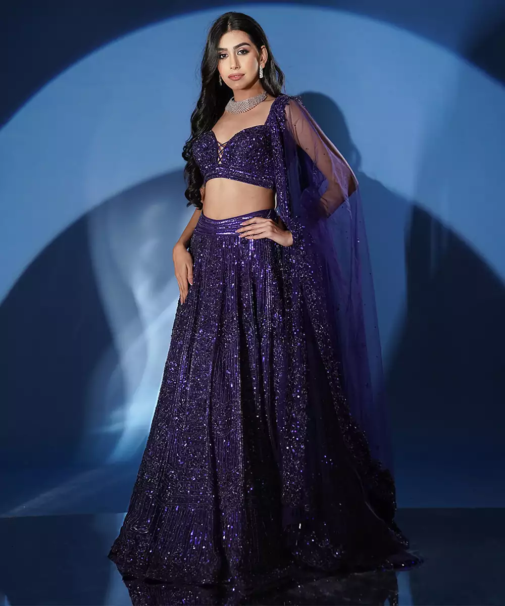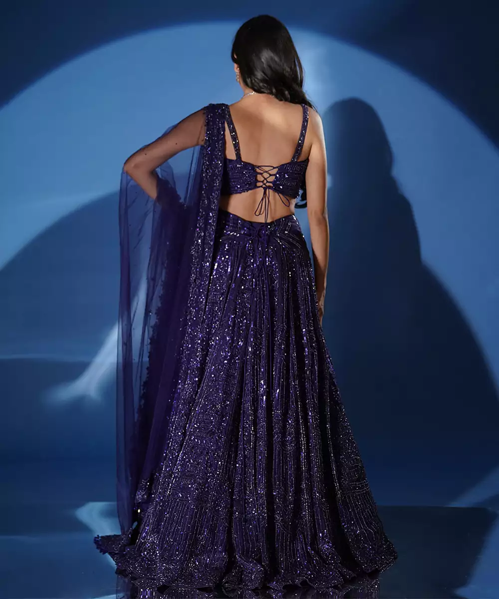 This Blue Embroidered Net Lehenga Set Exudes Understated Elegance And Contemporary Charm. Crafted From Sheer Net Fabric, It Features Intricate Embroidery That Adds A Refined, Graceful Touch. Perfect For Weddings And Festive Occasions, It Offers A Beautiful Silhouette With Timeless Sophistication.
