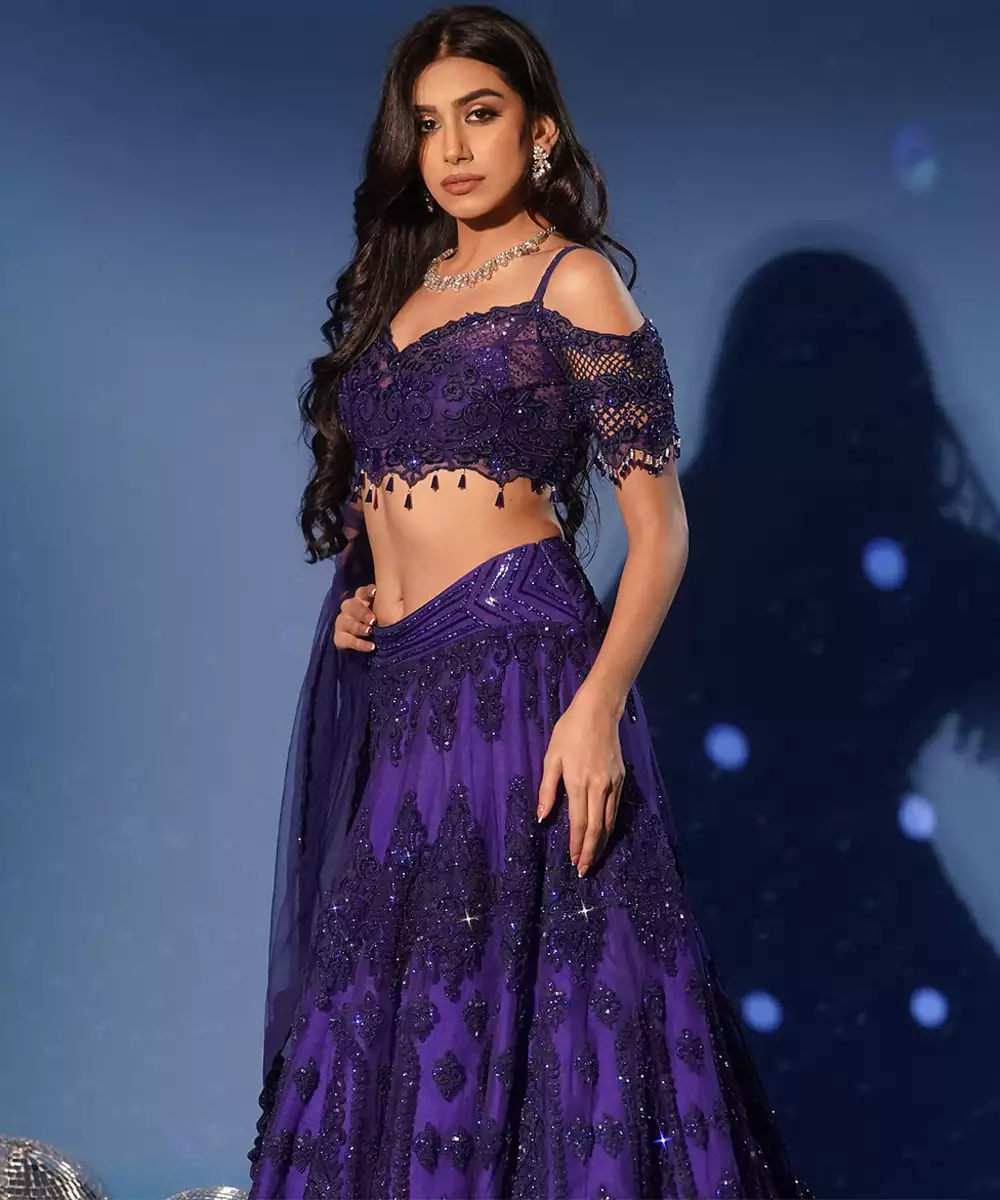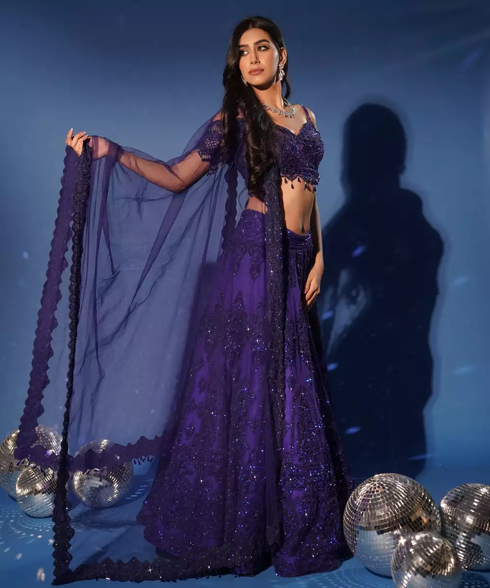 This Blue Embroidered Net Lehenga Set Exudes Understated Elegance And Contemporary Charm. Crafted From Sheer Net Fabric, It Features Intricate Embroidery That Adds A Refined, Graceful Touch. Perfect For Weddings And Festive Occasions, It Offers A Beautiful Silhouette With Timeless Sophistication.