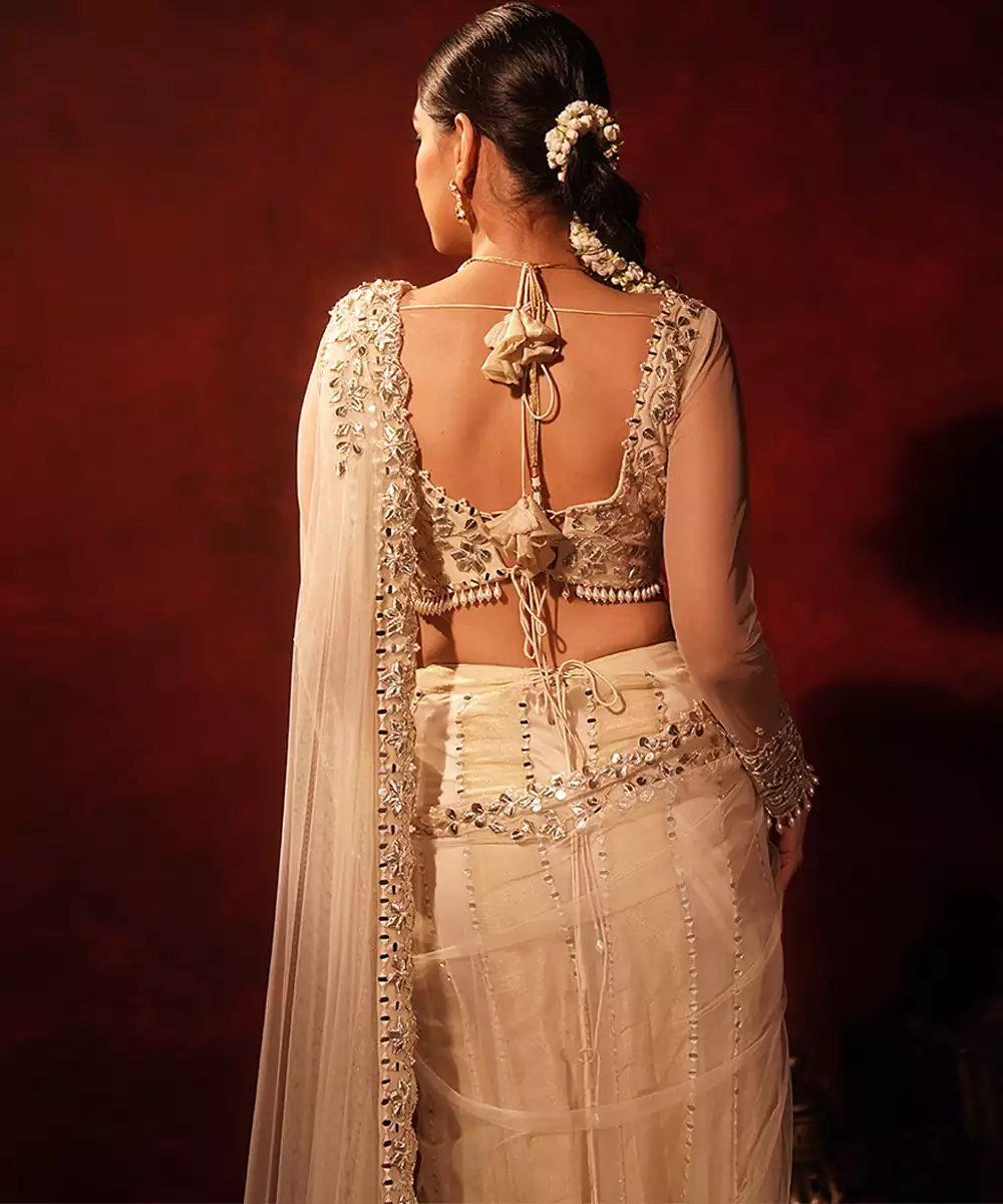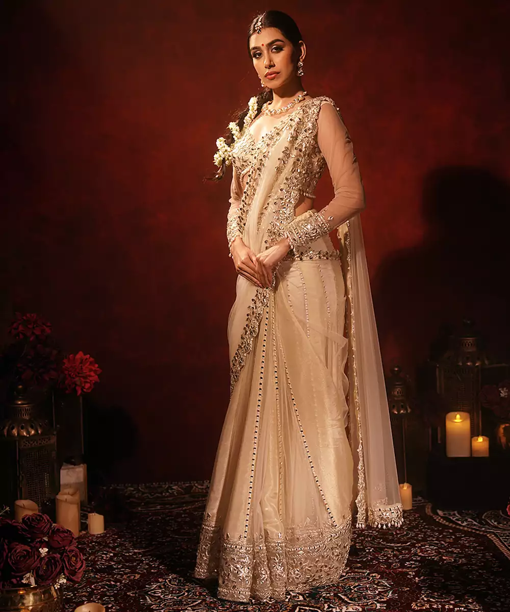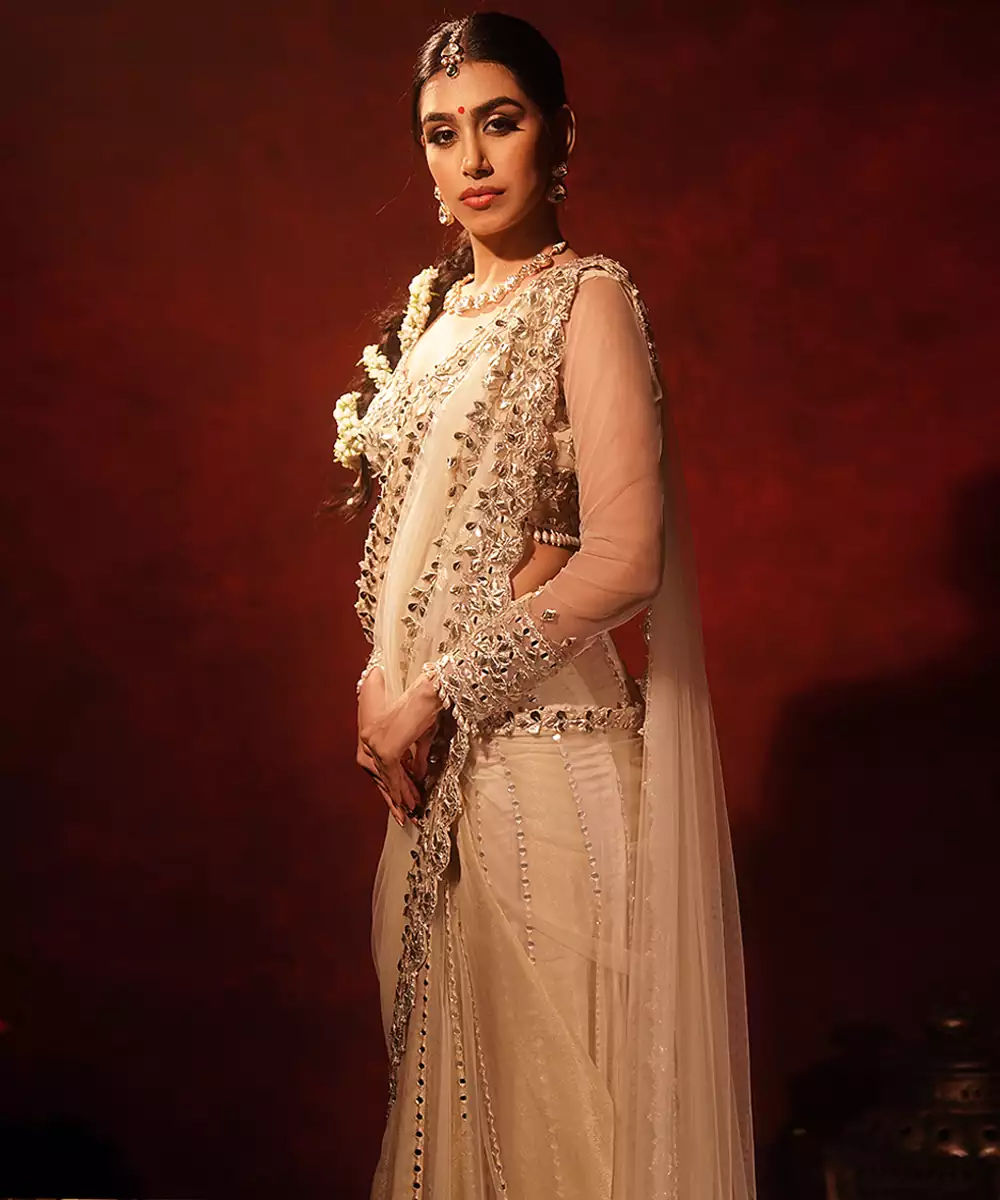 This Ivory Embroidered Georgette Saree Exudes Graceful Elegance And Understated Charm. Crafted From Lightweight Georgette Fabric, It Features Intricate Embroidery That Adds A Refined, Flowing Touch. Perfect For Weddings And Festive Occasions, It Drapes Beautifully And Enhances Traditional Looks With Timeless Sophistication.