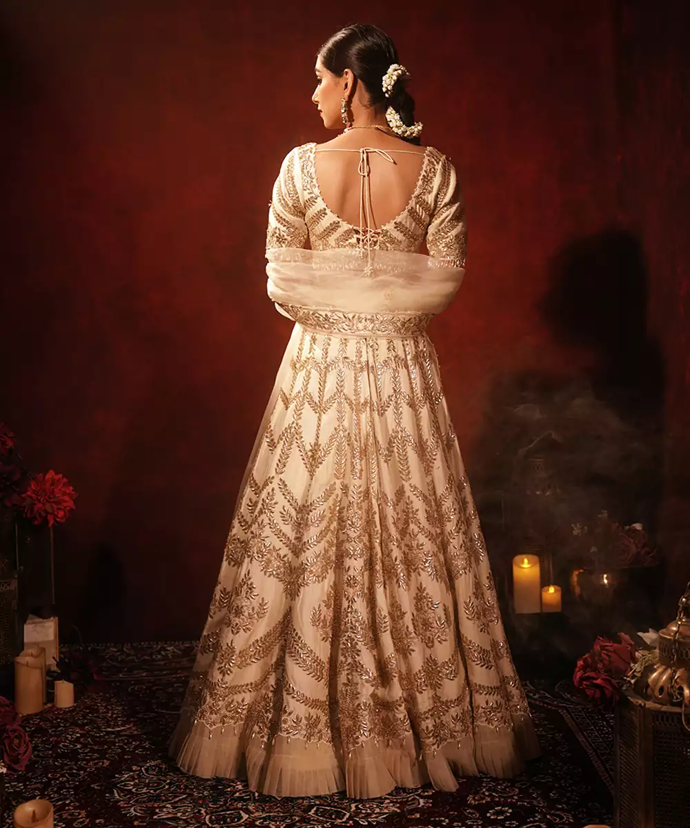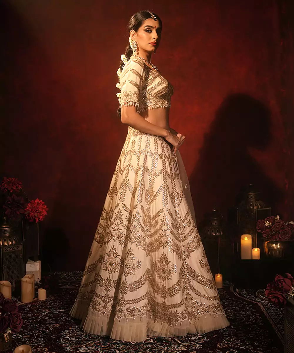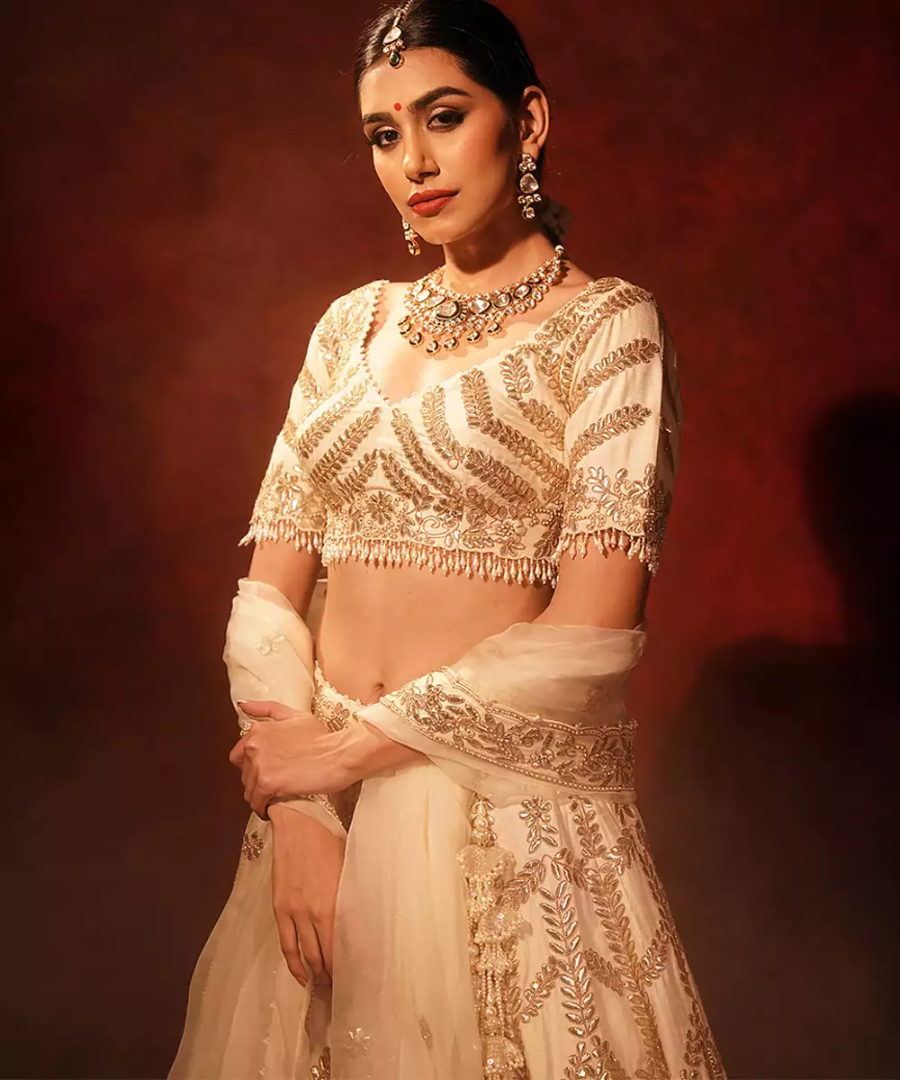 Ivory Embroidered Raw Silk Lehenga Set