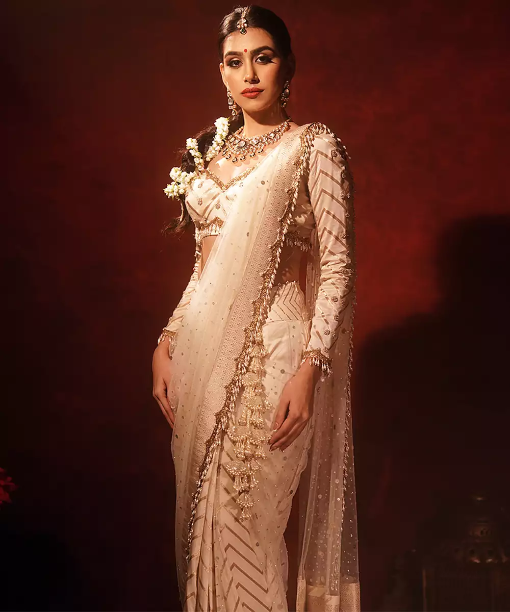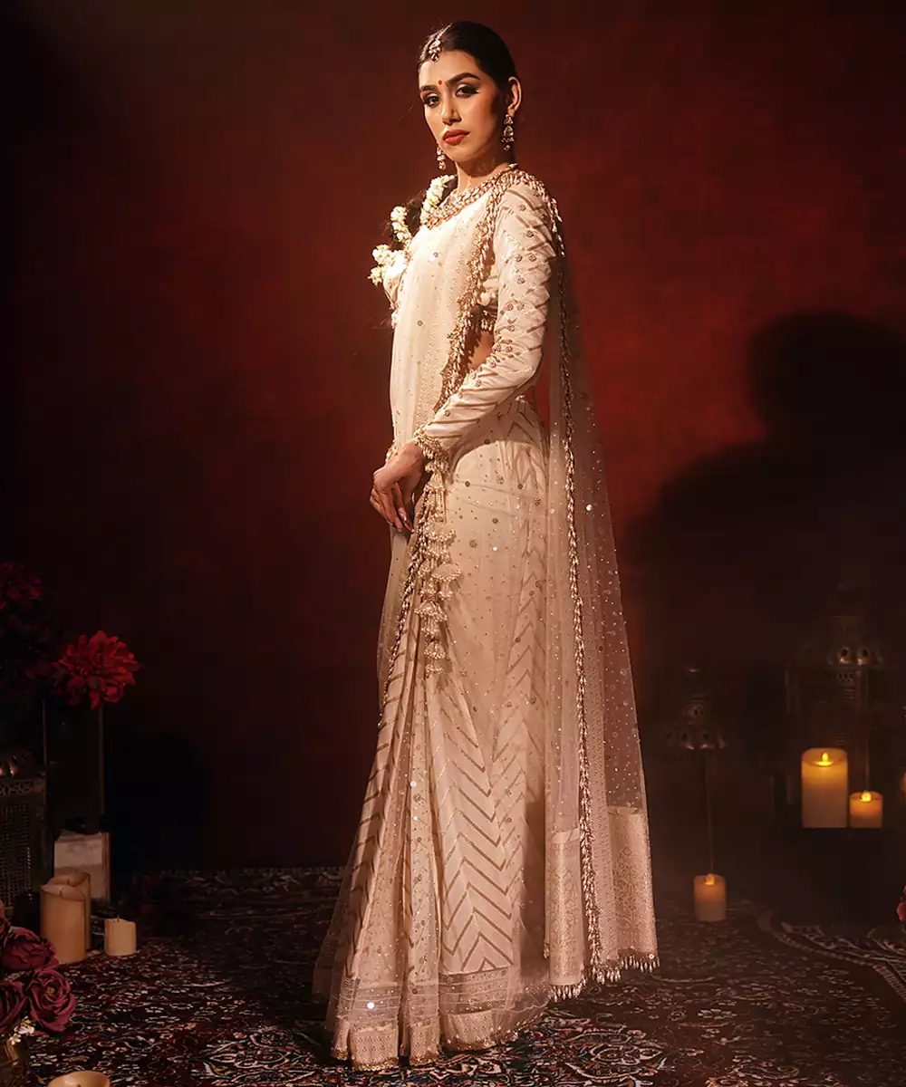 This Ivory Embroidered Silk Saree Exudes Refined Elegance And Timeless Charm. Crafted From Luxurious Silk Fabric, It Features Intricate Embroidery That Adds A Graceful, Sophisticated Touch. Perfect For Weddings And Festive Occasions, It Drapes Beautifully And Enhances Traditional Looks With Classic Appeal.