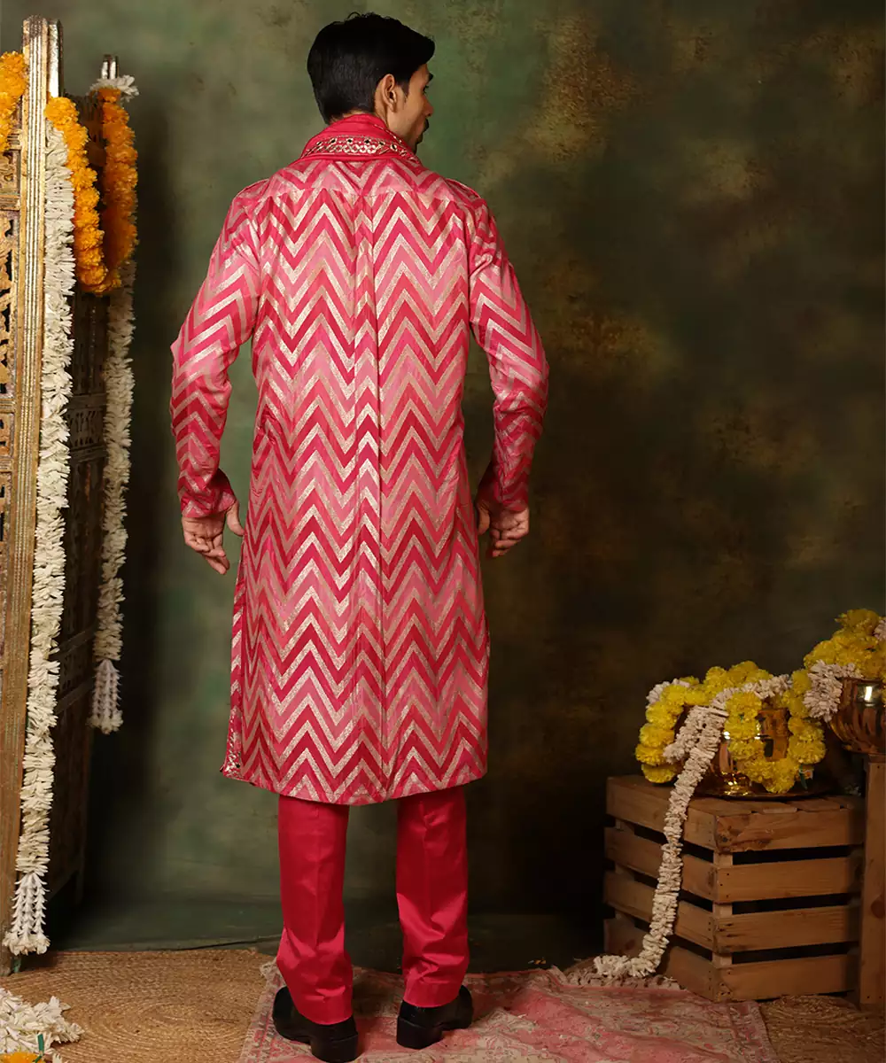 A Graceful Pink Silk Kurta Set Adorned With Delicate Embroidery That Enhances Its Feminine Charm. The Smooth, Lustrous Silk Drapes Beautifully, Offering A Refined Silhouette. Perfect For Festive Mornings, Family Gatherings, And Cultural Occasions, This Set Blends Traditional Elegance With Everyday Festive Comfort.