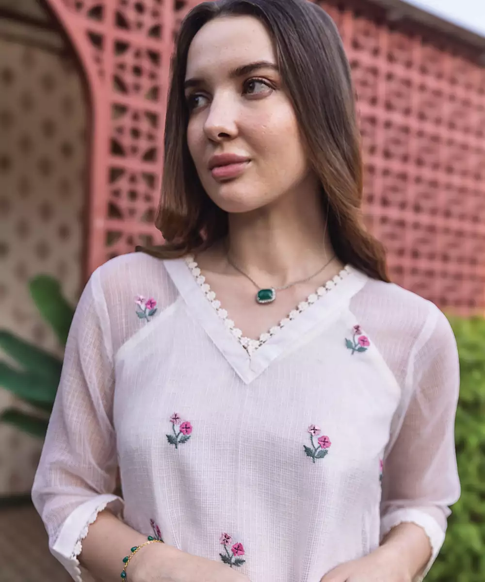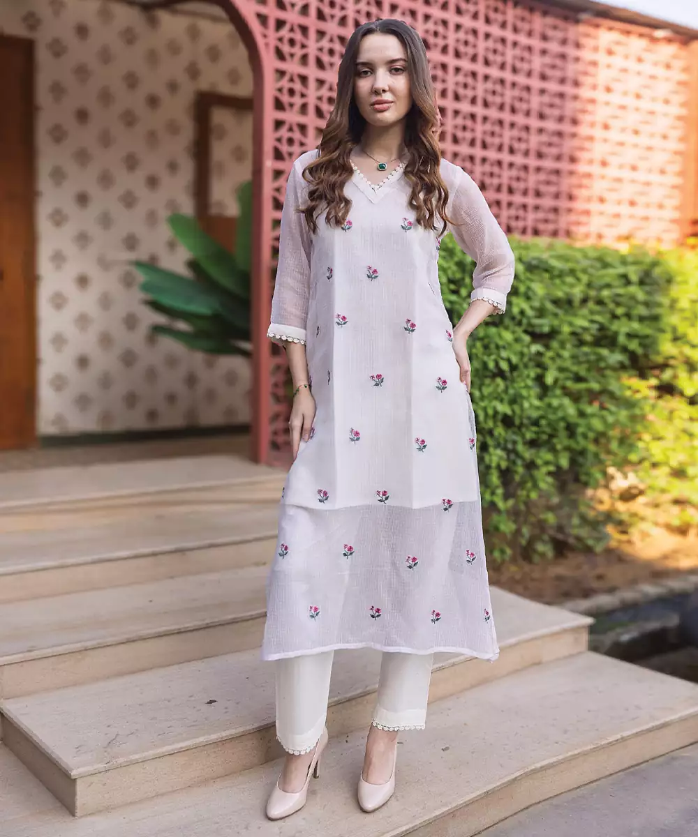 Elegant And Minimal, This Off White Embroidered Cotton Kurta Set Features Intricate Detailing That Enhances Its Classic Appeal. The Breathable Cotton Fabric Ensures Comfort, Making It Ideal For Daywear And Small Gatherings. A Versatile Outfit That Reflects Sophistication With A Touch Of Traditional Craftsmanship.
