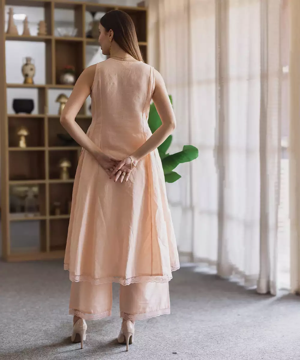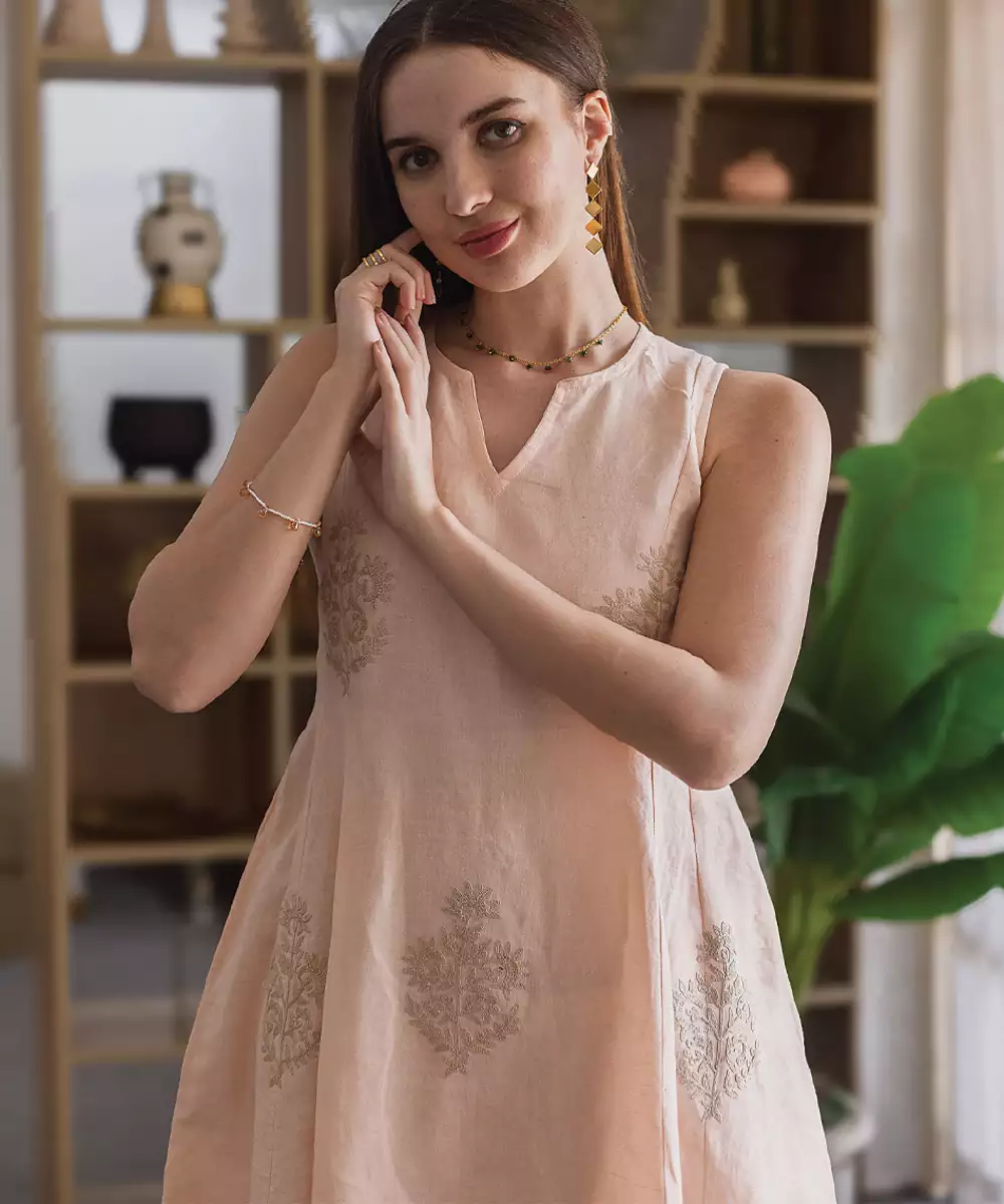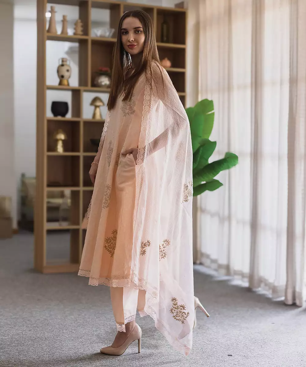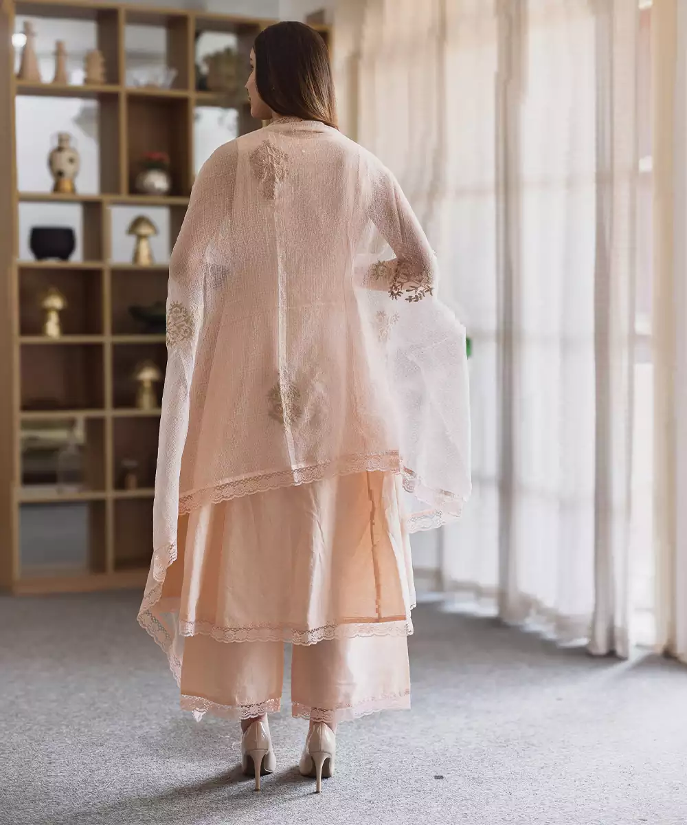 Crafted In Breathable Linen, This Peach Embroidered Straight Suit Set Offers A Soft And Elegant Appeal. The Subtle Embroidery Adds Refinement, Making It Perfect For Daytime Outings And Casual Gatherings. A Comfortable Yet Stylish Ensemble That Blends Simplicity With Graceful Charm Beautifully.