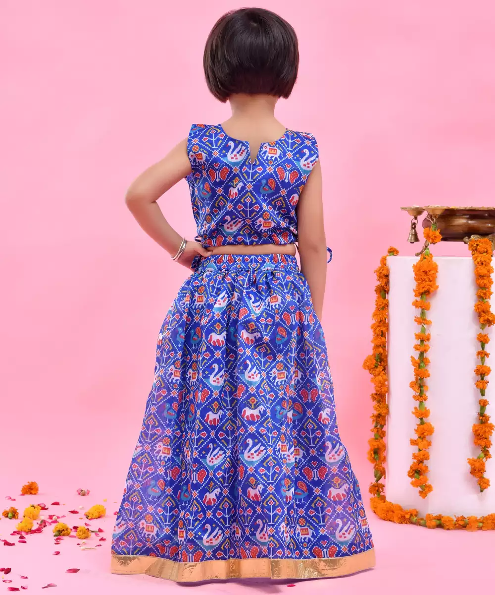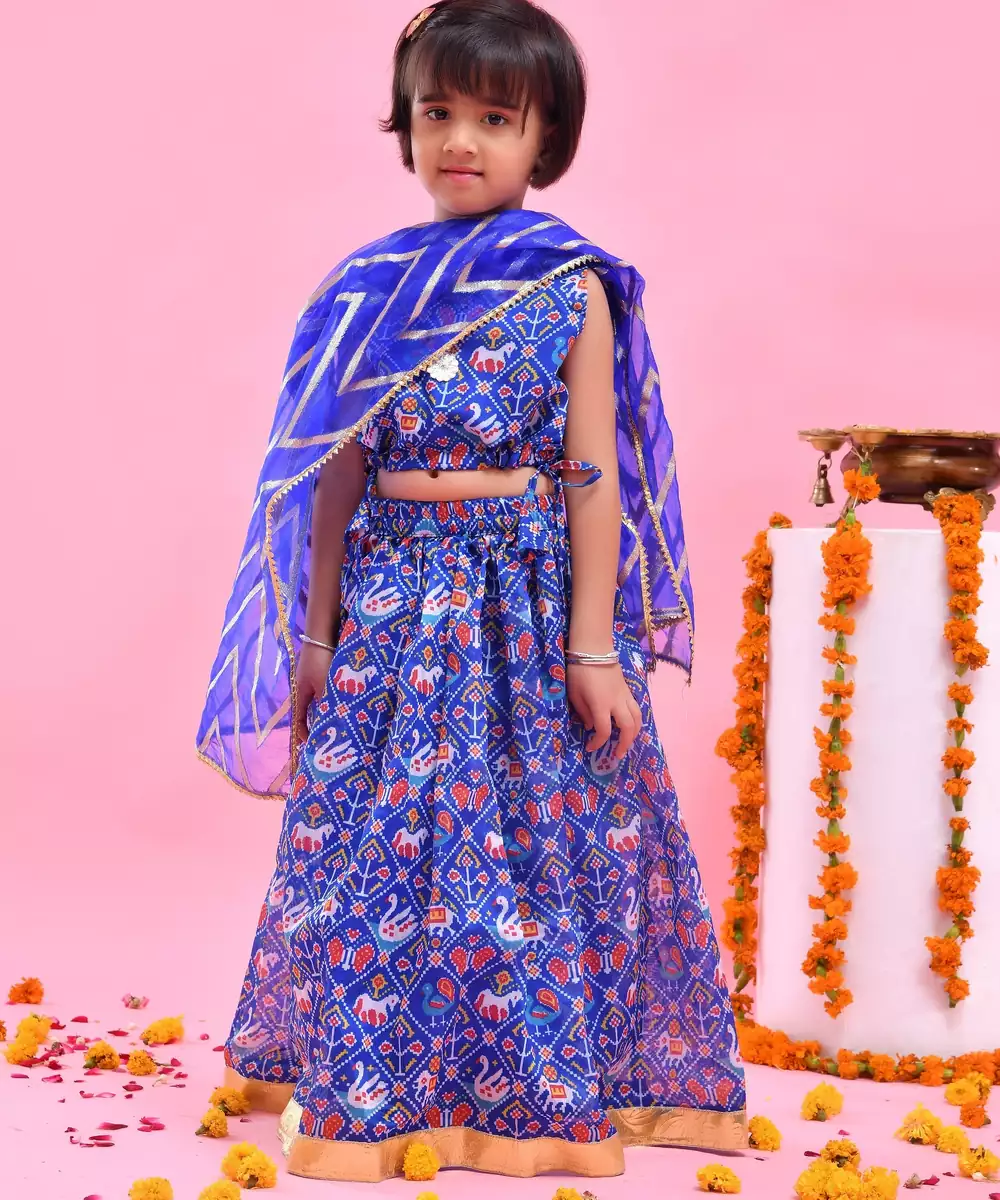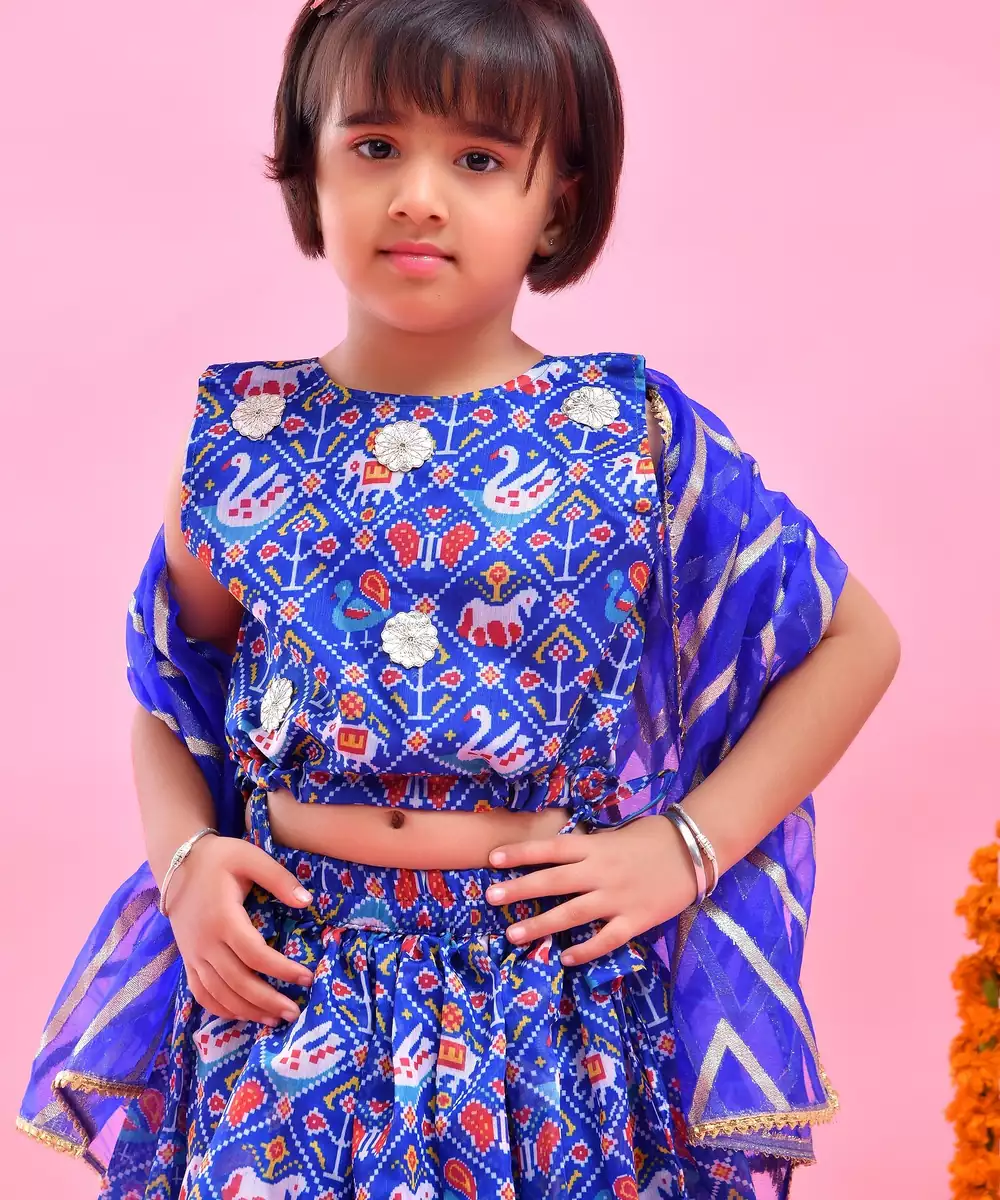 Featuring A Blue, Printed Lehenga Set In Chanderi Fabric. It's Paired With A Blouse And Gota Embellished Chanderi Dupatta.