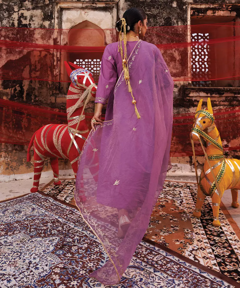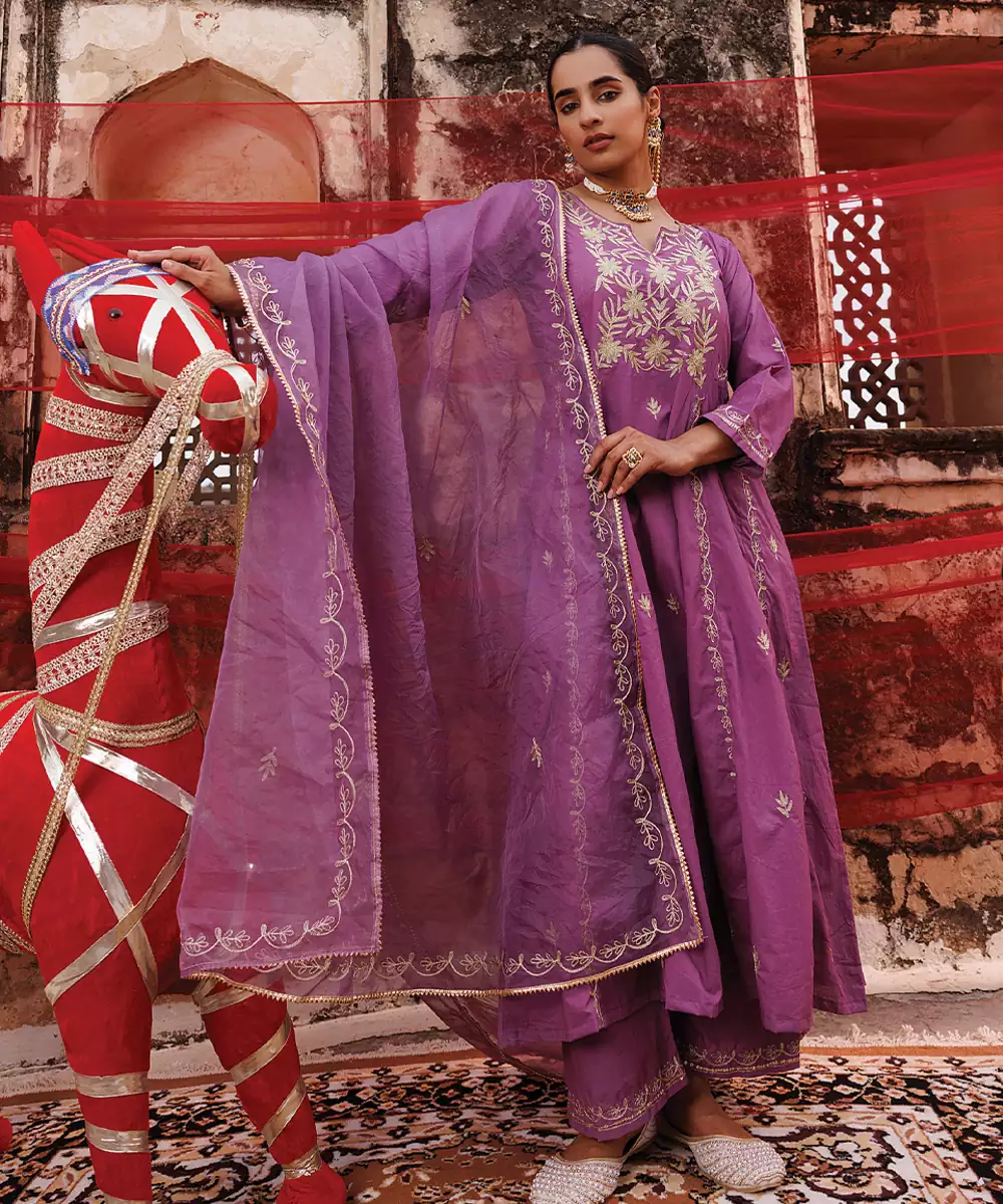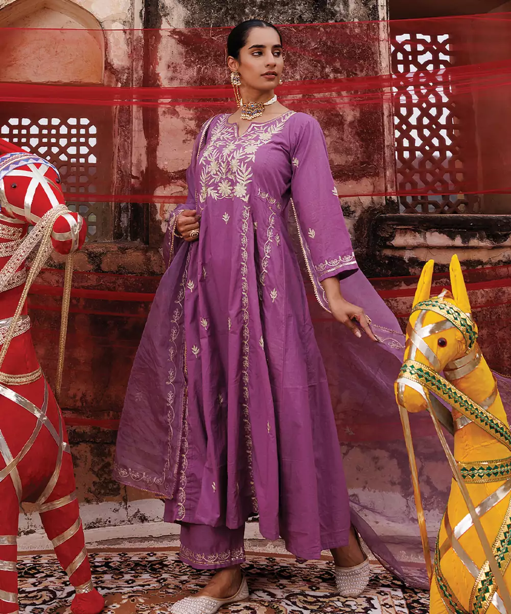 Lavender Embroidered Cotton Anarkali Set