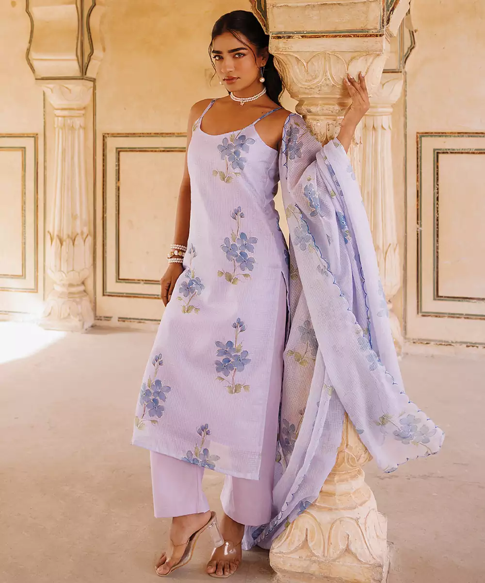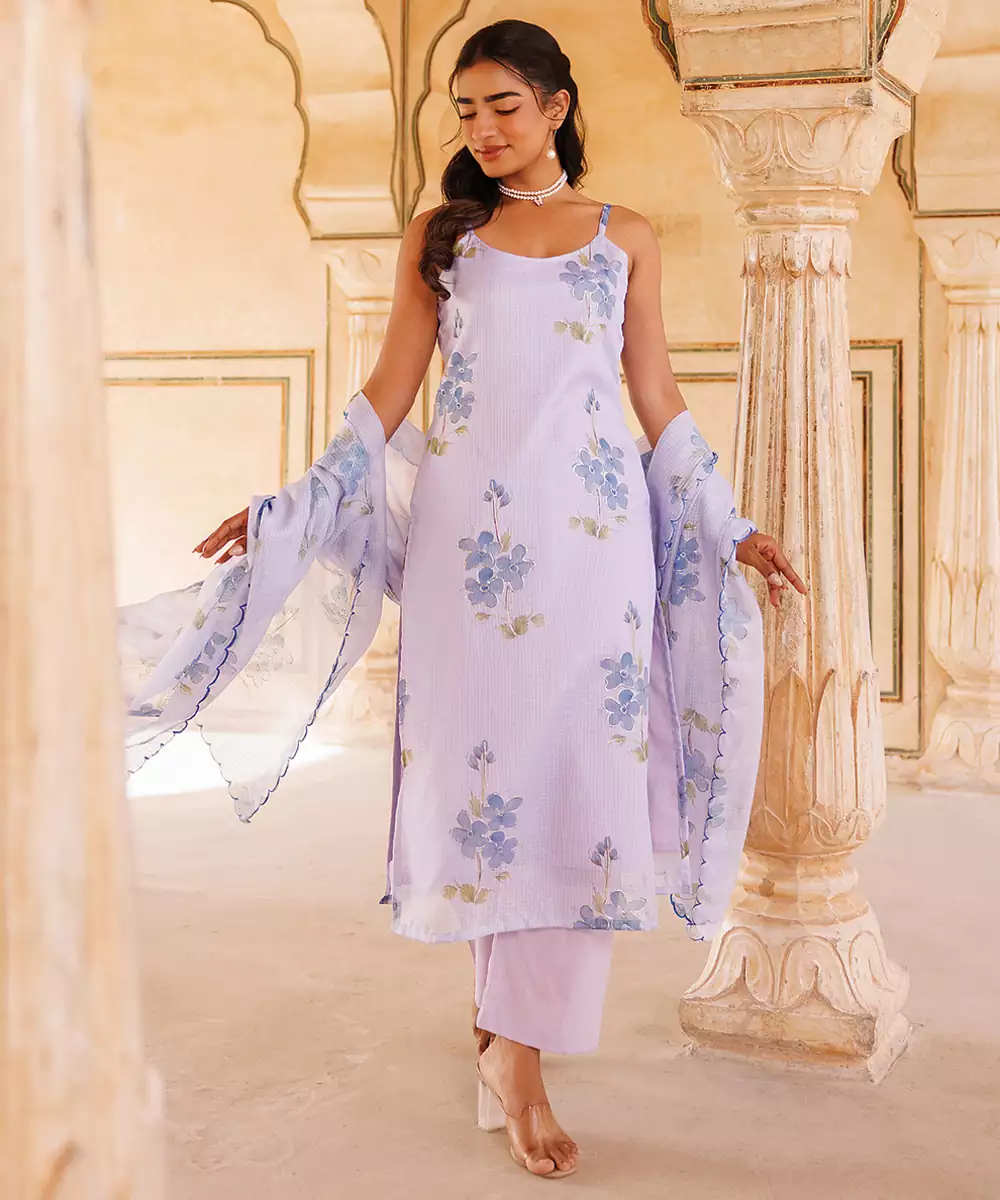 This Lavender Printed Cotton Kurta Set Showcases Soft Hues With Delicate Prints, Creating A Soothing And Elegant Look. The Breathable Fabric Ensures Comfort, Making It Ideal For Daily Wear. A Stylish Yet Relaxed Outfit That Blends Simplicity With Modern Charm Beautifully.