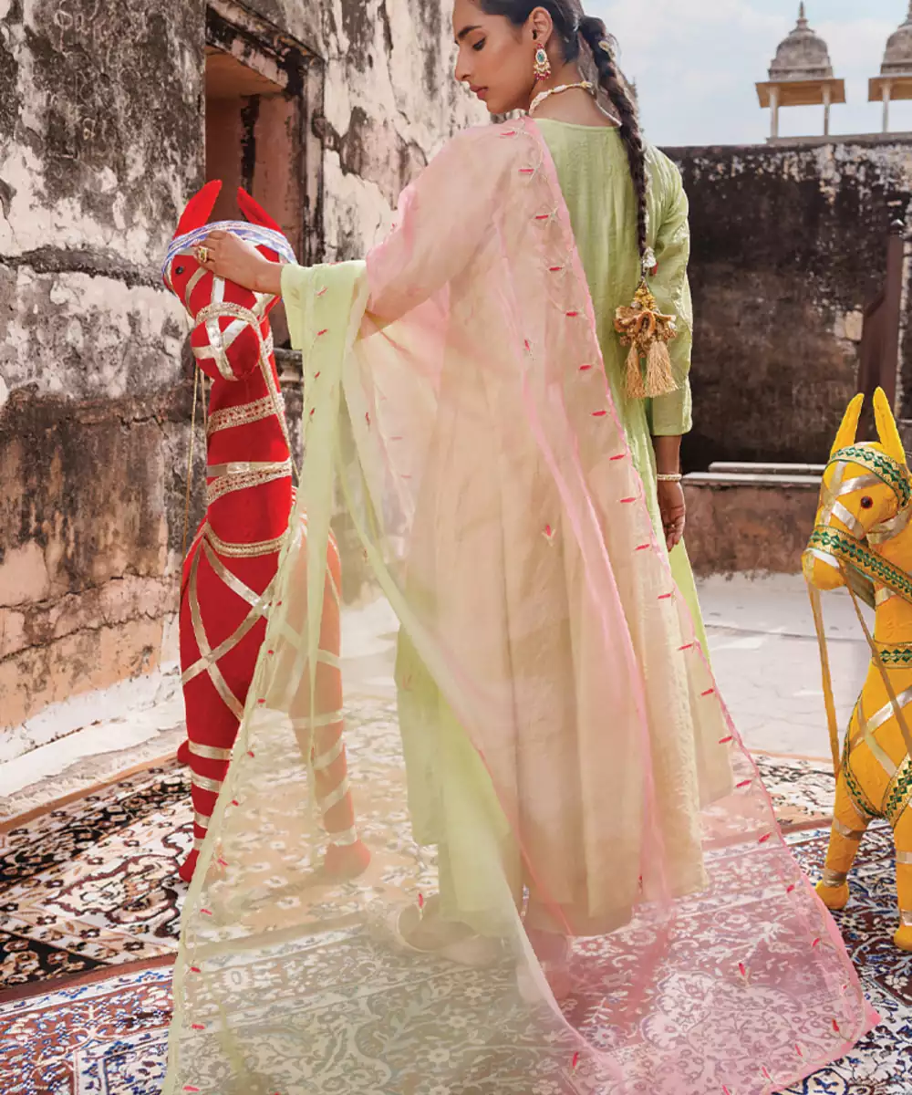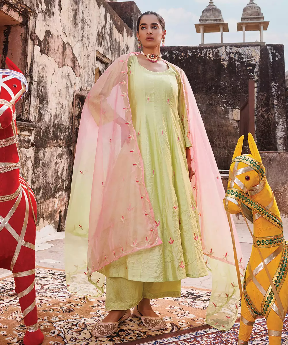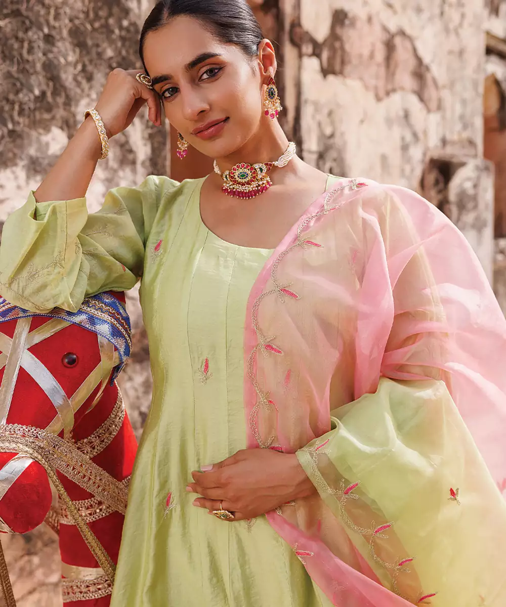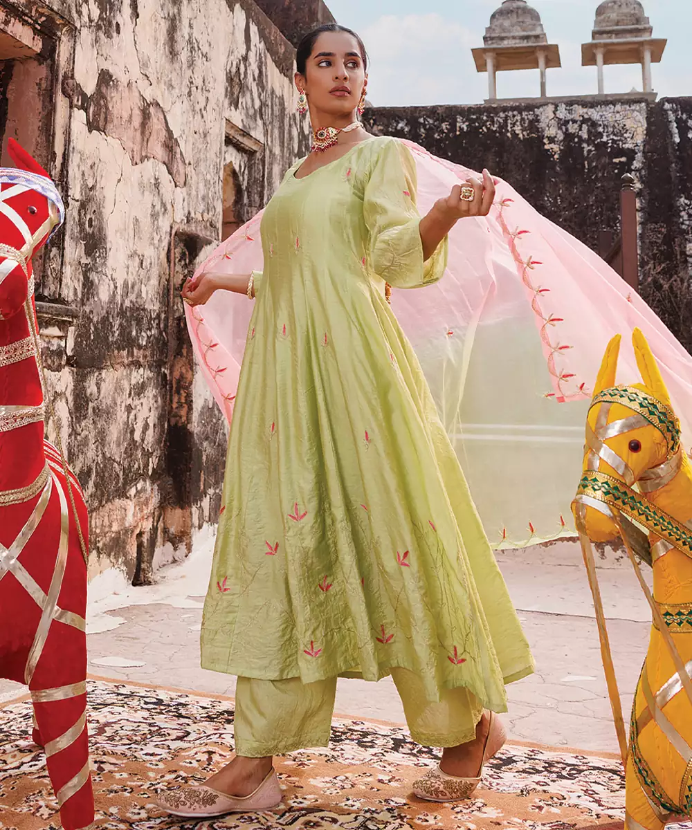 Light Green Embroidered Chanderi Anarkali Set
