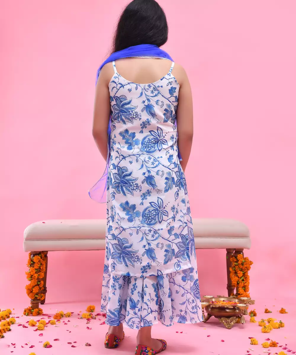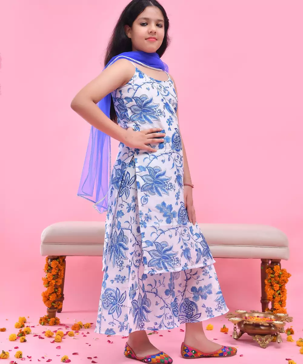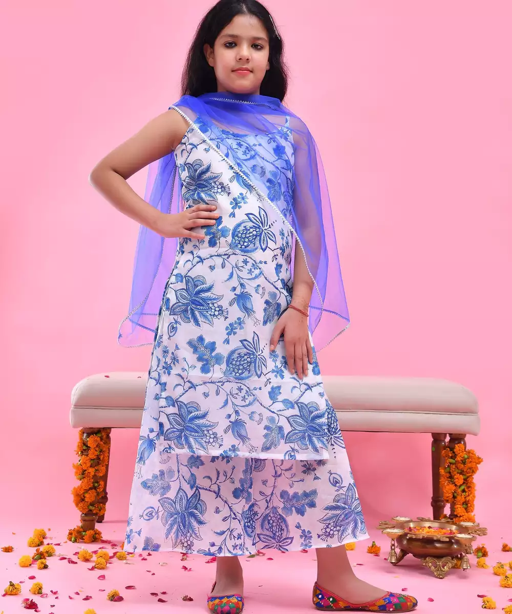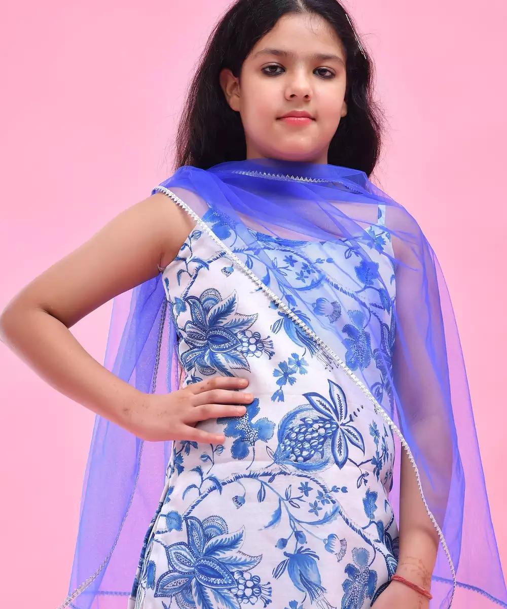 Featuring A White & Blue Chanderi Kurta, Palazzo And Blue Soft Net Dupatta.