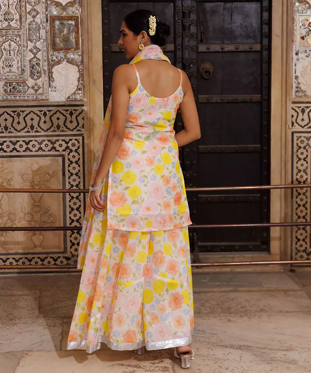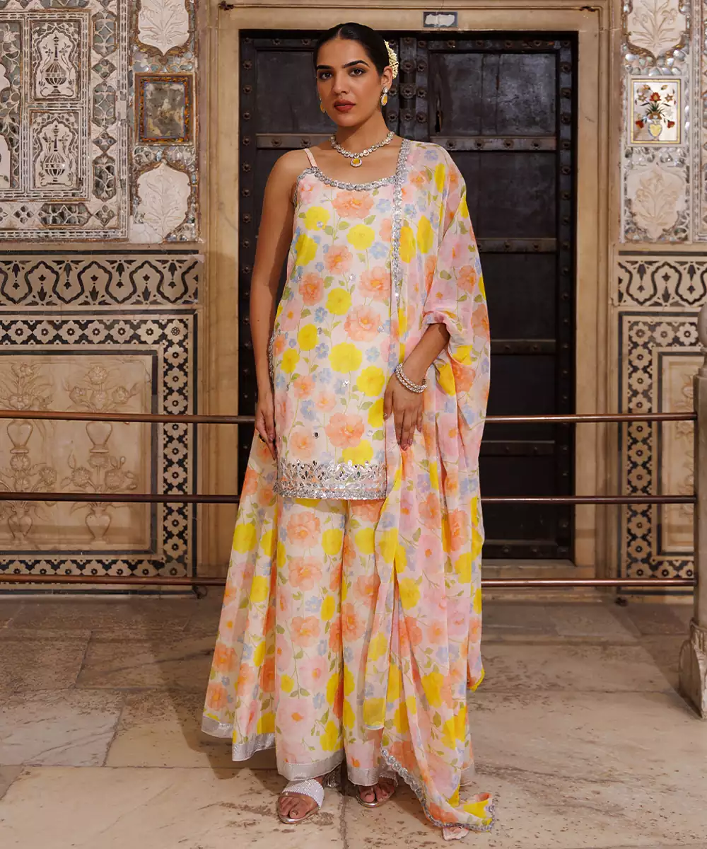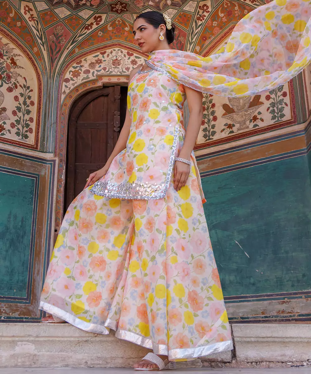 Components: 1 Kurta / 1 Sharara / 1 Dupatta