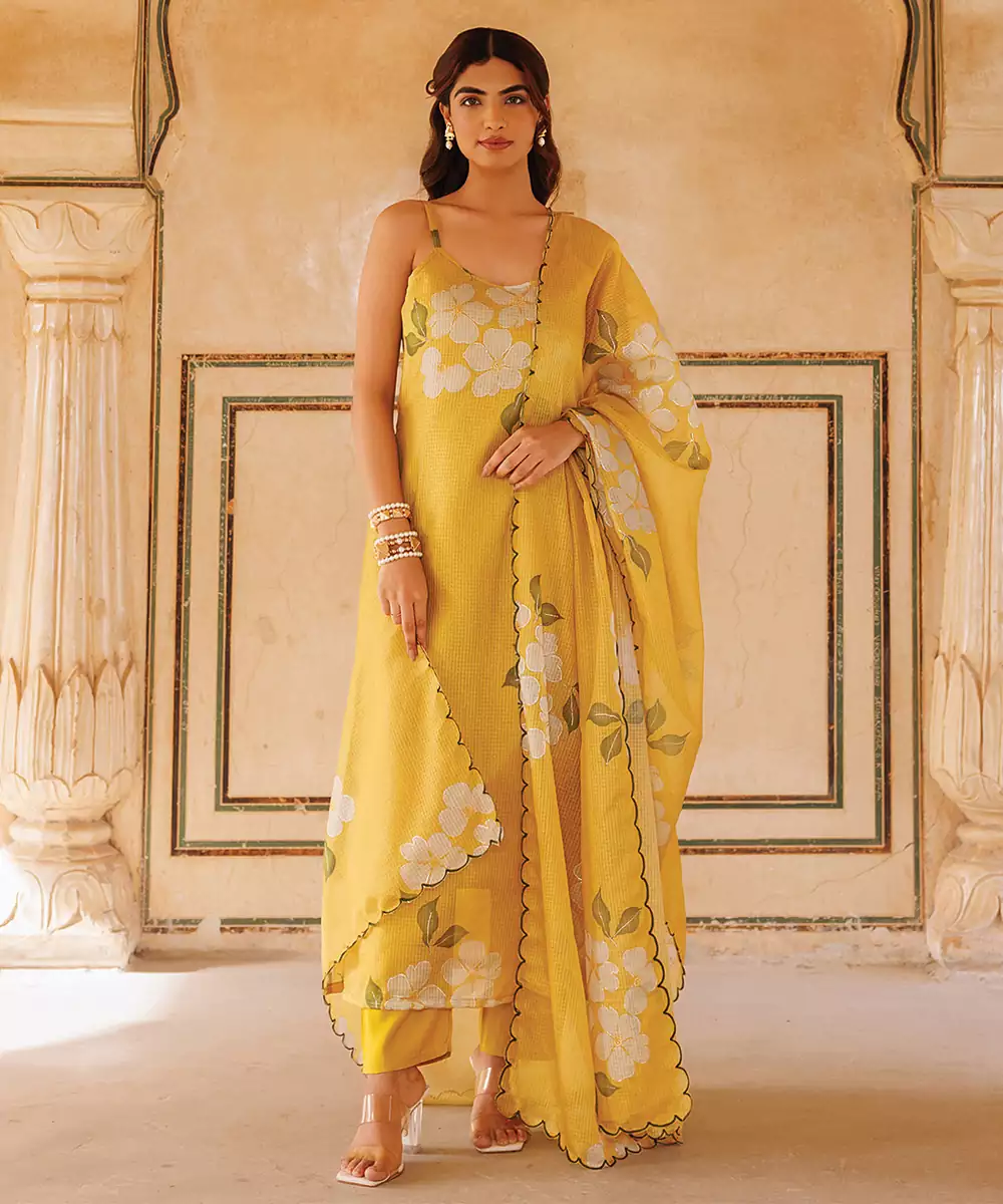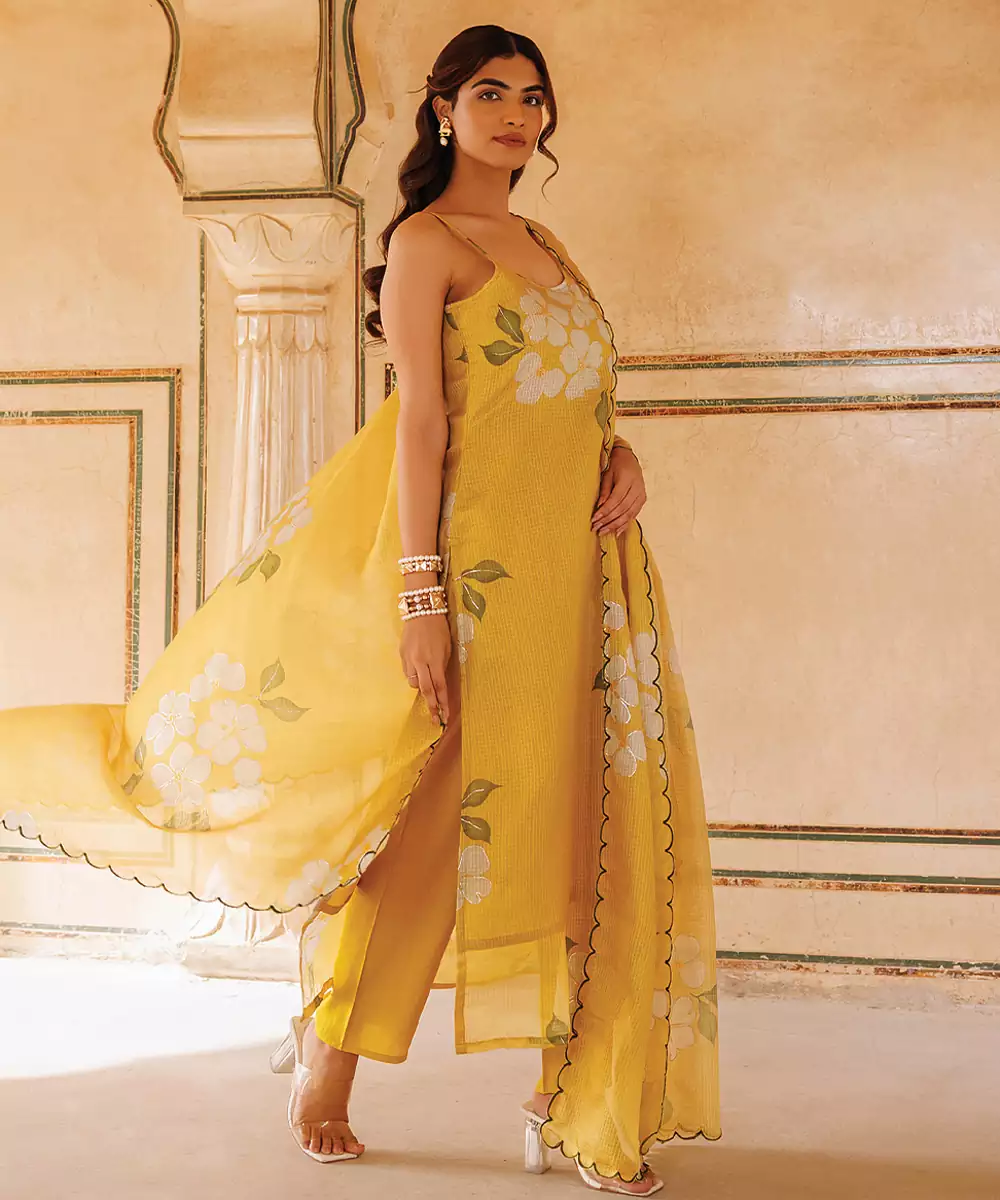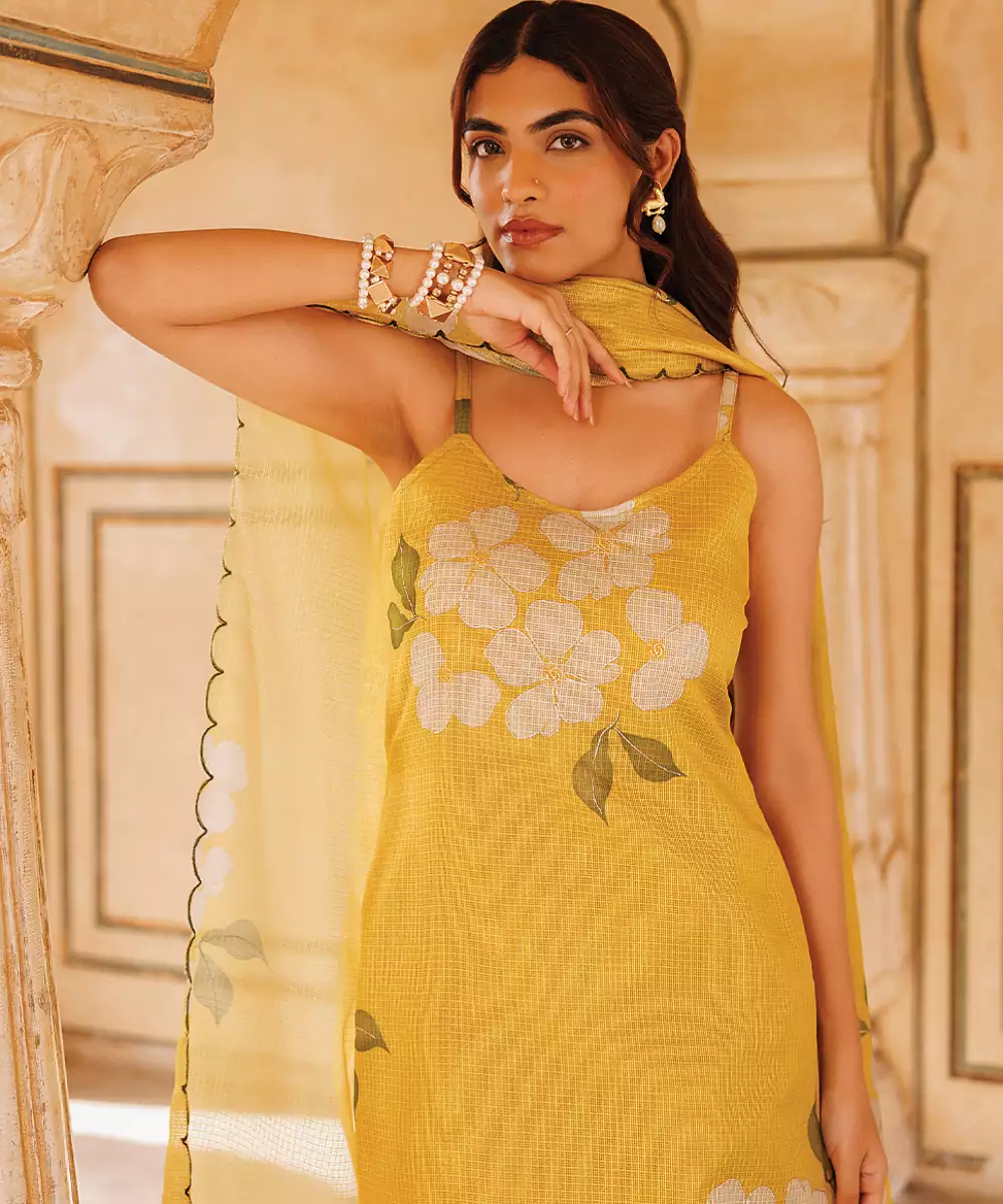 Bright And Cheerful, This Mustard Yellow Printed Cotton Kurta Set Features Vibrant Prints On Soft Fabric. Designed For Comfort And Style, It Is Perfect For Casual Outings And Everyday Wear, Offering A Lively And Refreshing Addition To Your Wardrobe.