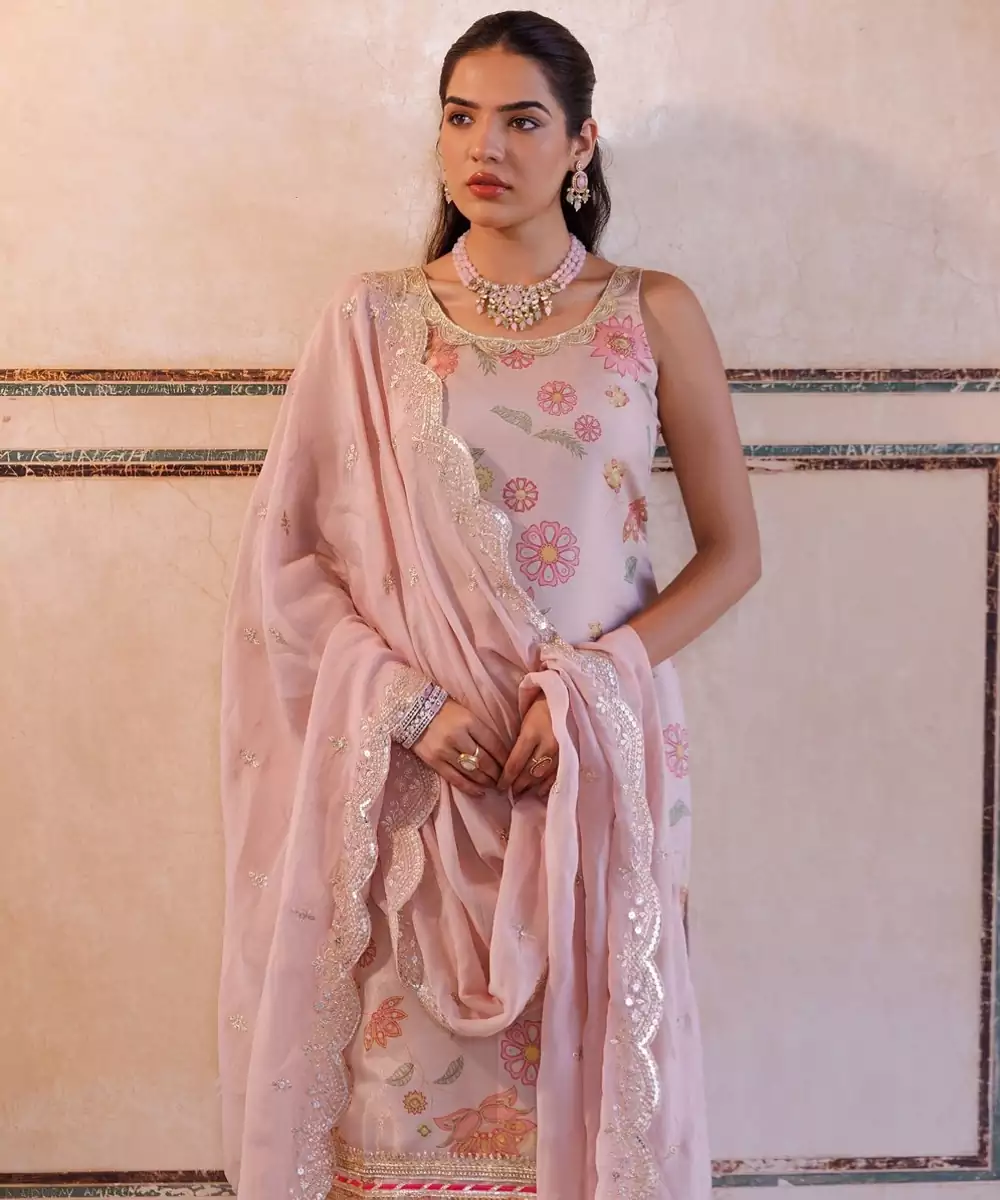 Pink Embroidered Kurta Jacket Set