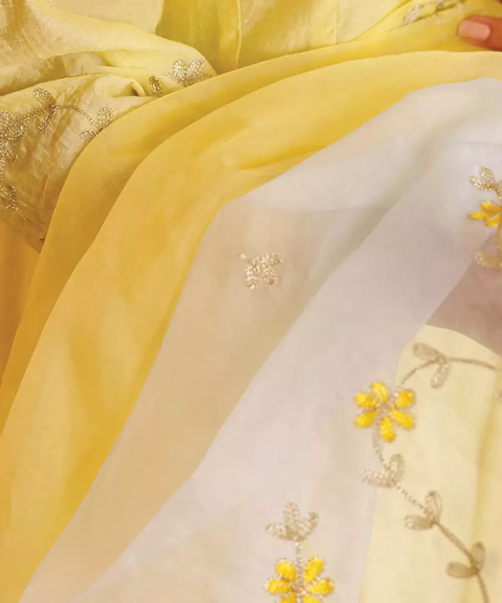 Bright And Radiant, This Yellow Embroidered Chanderi Anarkali Set Features A Flowy Silhouette With Intricate Detailing. The Lightweight Fabric Ensures Comfort, While The Elegant Flare Adds Grace. Perfect For Festive Occasions, It Offers A Vibrant And Traditional Look With Modern Appeal.