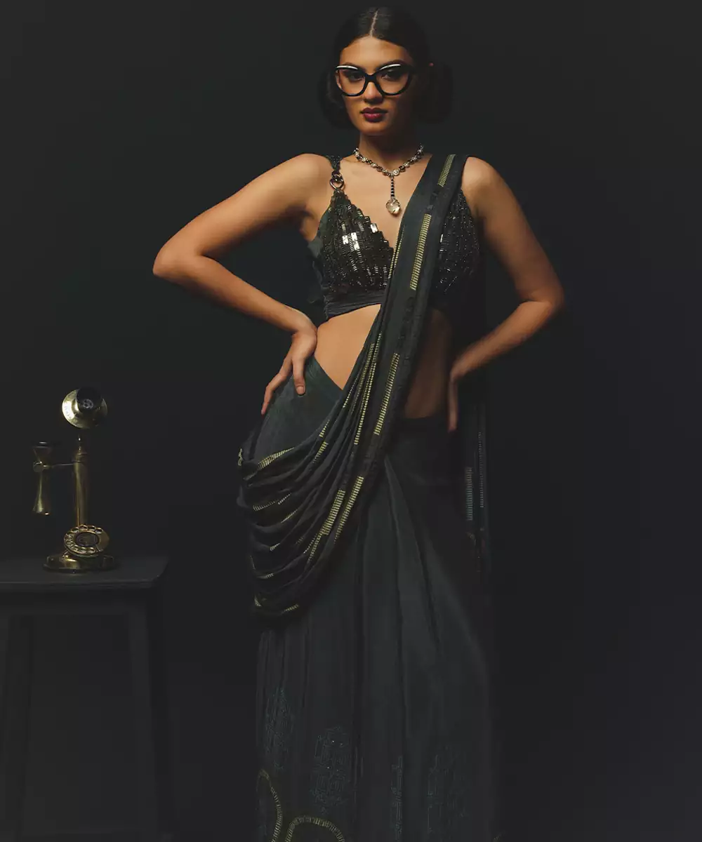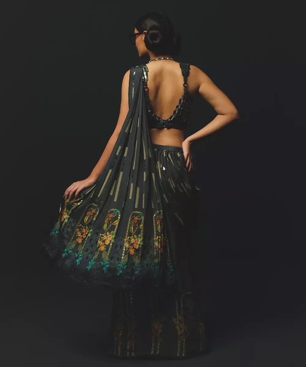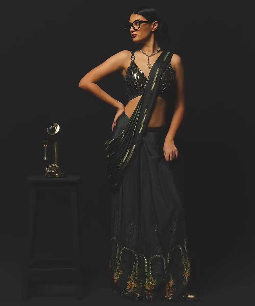 Embrace Classic Sophistication In This Black Embroidered Satin Saree, Crafted With A Smooth, Lustrous Finish And Fluid Drape. Delicate Embroidery Adds A Touch Of Glamour To Its Timeless Appeal. Paired With A Matching Blouse, This Saree Is Perfect For Evening Parties, Festive Celebrations, And Elegant Special Occasions.
