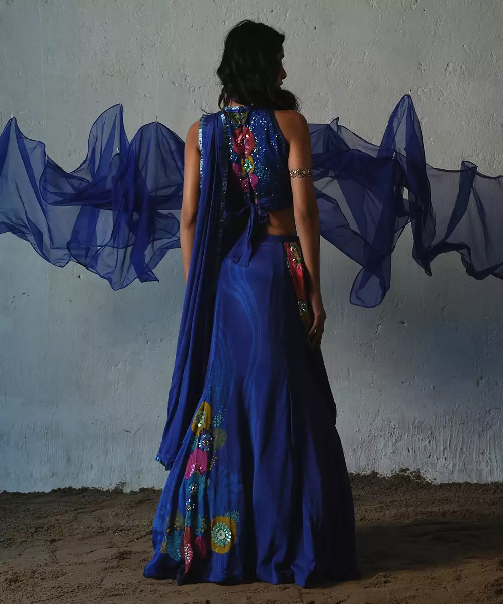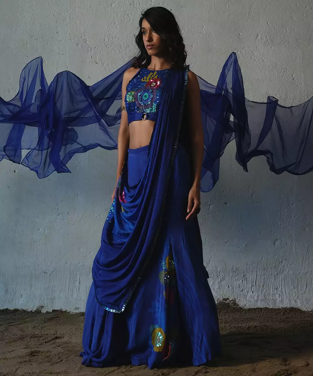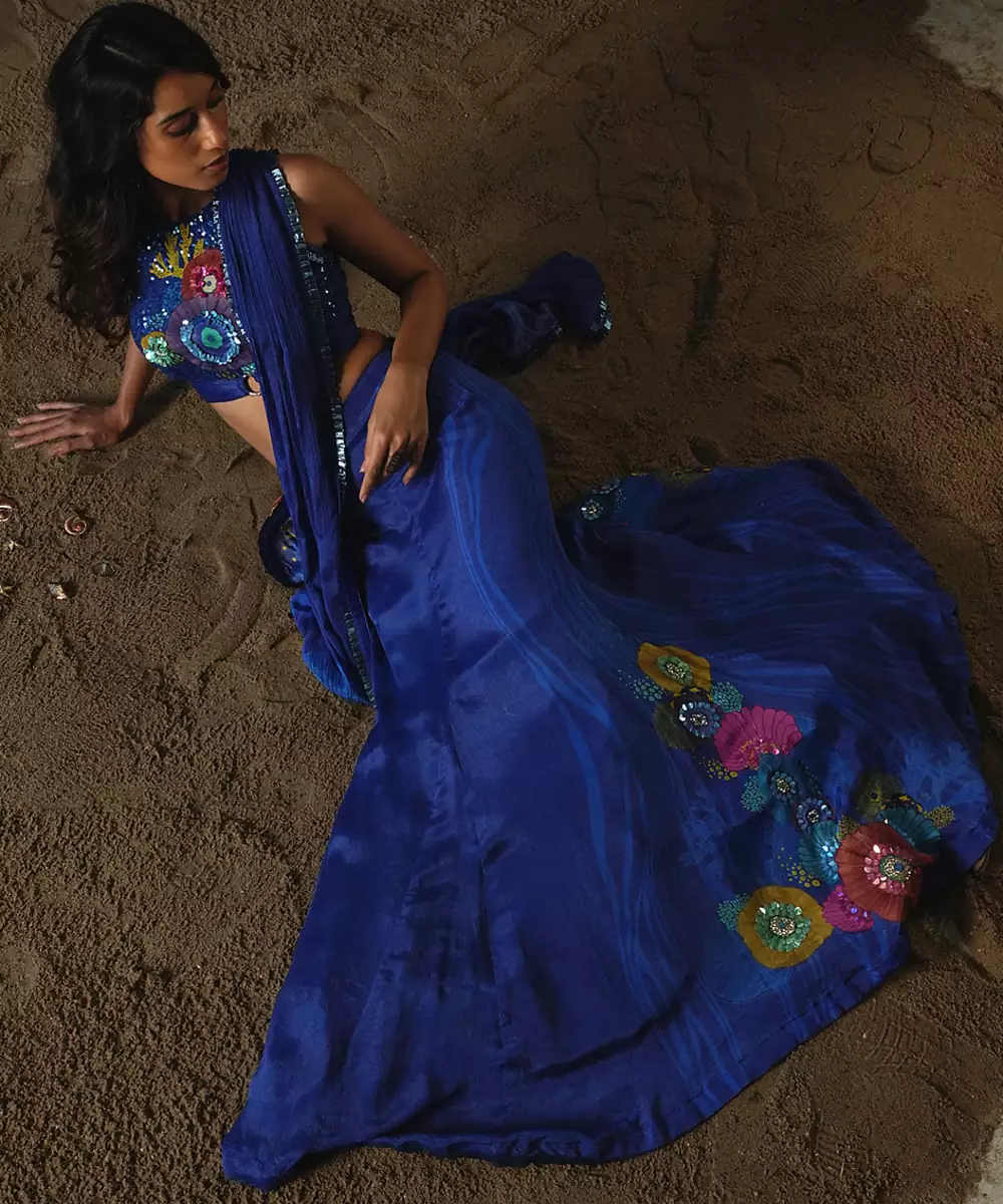 Blue Embroidered Chiffon Saree