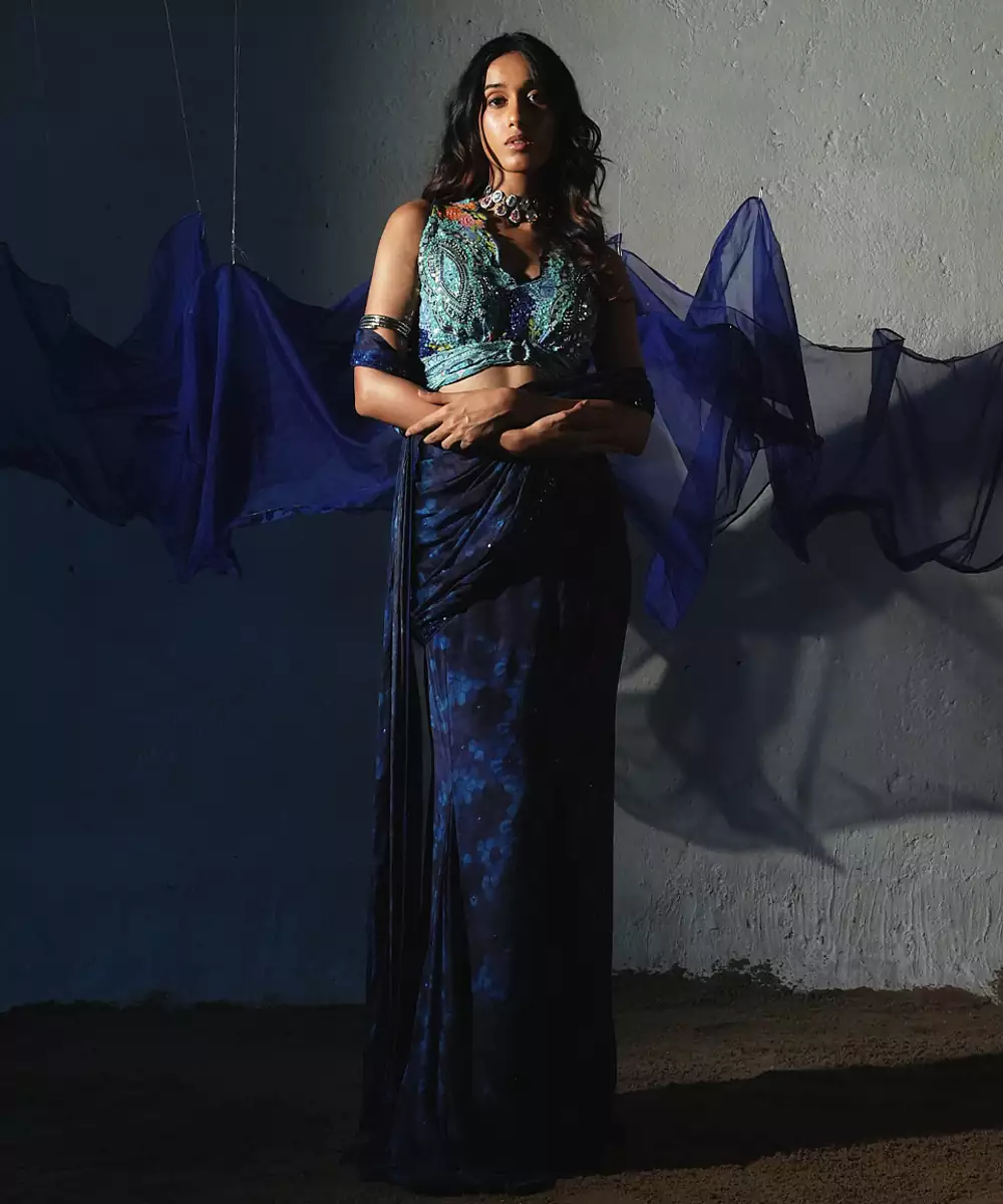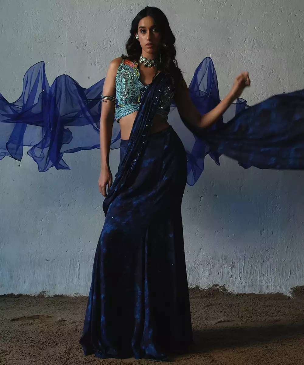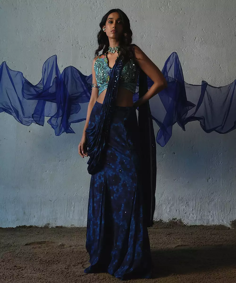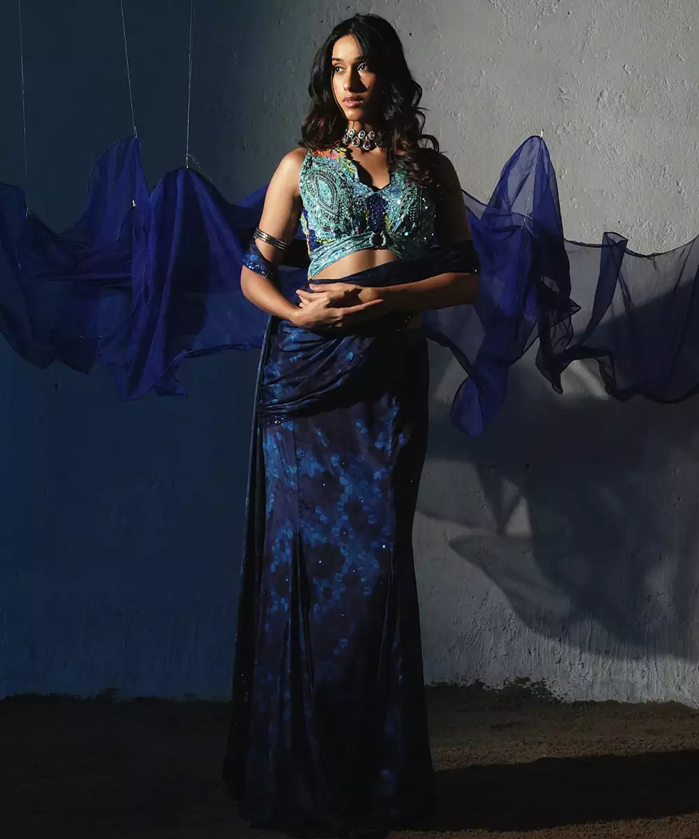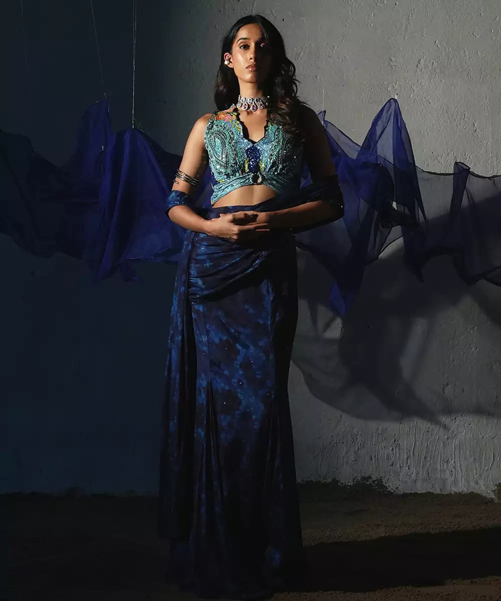 This Blue Embroidered Chiffon Saree Reflects Graceful Elegance And Timeless Charm. Crafted From Lightweight Chiffon Fabric, It Features Intricate Embroidery That Adds A Refined, Stylish Touch. Perfect For Festive Occasions And Special Events, It Offers A Soft, Flowy Drape, Comfortable Wear, And Classic Ethnic Appeal.