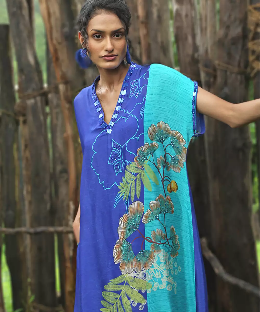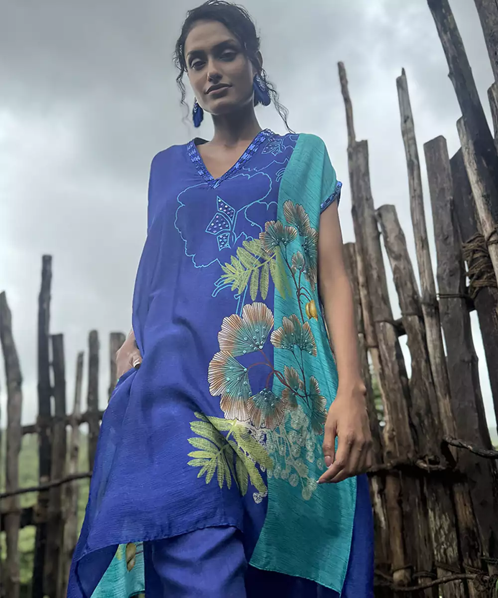 This Blue Printed Chiffon Kurta Set Showcases Breezy Elegance And Cheerful Charm. Crafted From Lightweight Chiffon Fabric, It Features Vibrant Prints That Add A Fresh, Lively Touch. Perfect For Daytime Festivities And Casual Celebrations, It Offers A Graceful Drape, Airy Comfort, And Effortless Ethnic Style.