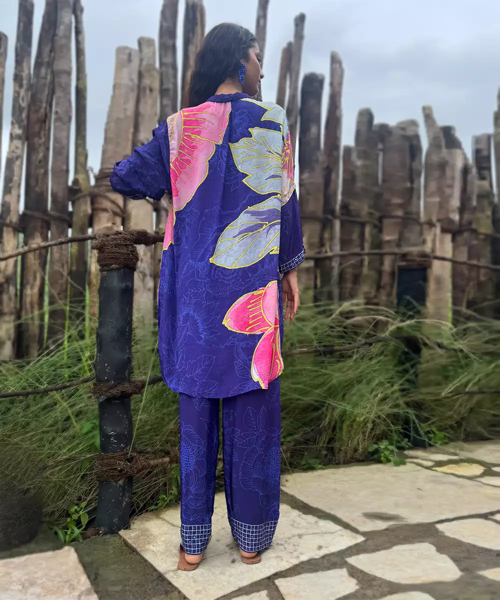 Blue Printed Crepe Kurta Set