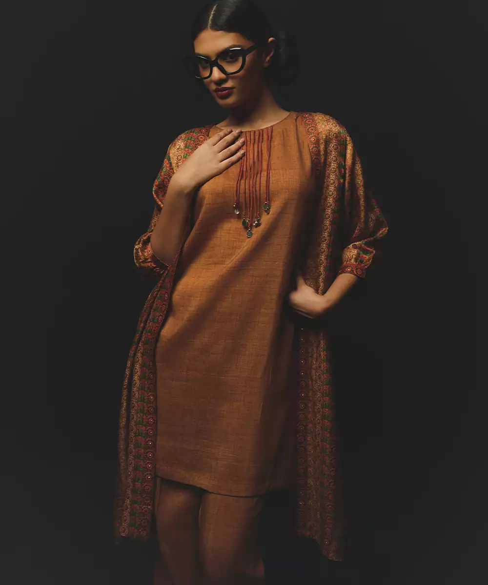 Step Out In Effortless Charm With This Brown Printed Satin Kurta Set, Featuring A Smooth, Lustrous Fabric And Elegant Drape. Subtle Prints Enhance Its Contemporary Appeal, While The Comfortable Silhouette Ensures Ease Of Wear. Perfect For Festive Occasions, Evening Gatherings, And Stylish Daytime Celebrations.