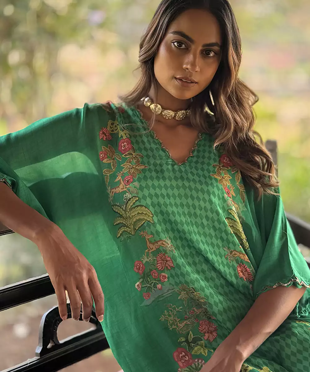This Green Printed Crepe Kurta Set Exudes Fresh Elegance And Casual Charm. Crafted From Lightweight Crepe Fabric, It Features Vibrant Prints That Add A Lively, Stylish Touch. Perfect For Daytime Gatherings And Festive Occasions, It Offers A Comfortable Fit, Graceful Drape, And Timeless Ethnic Appeal.