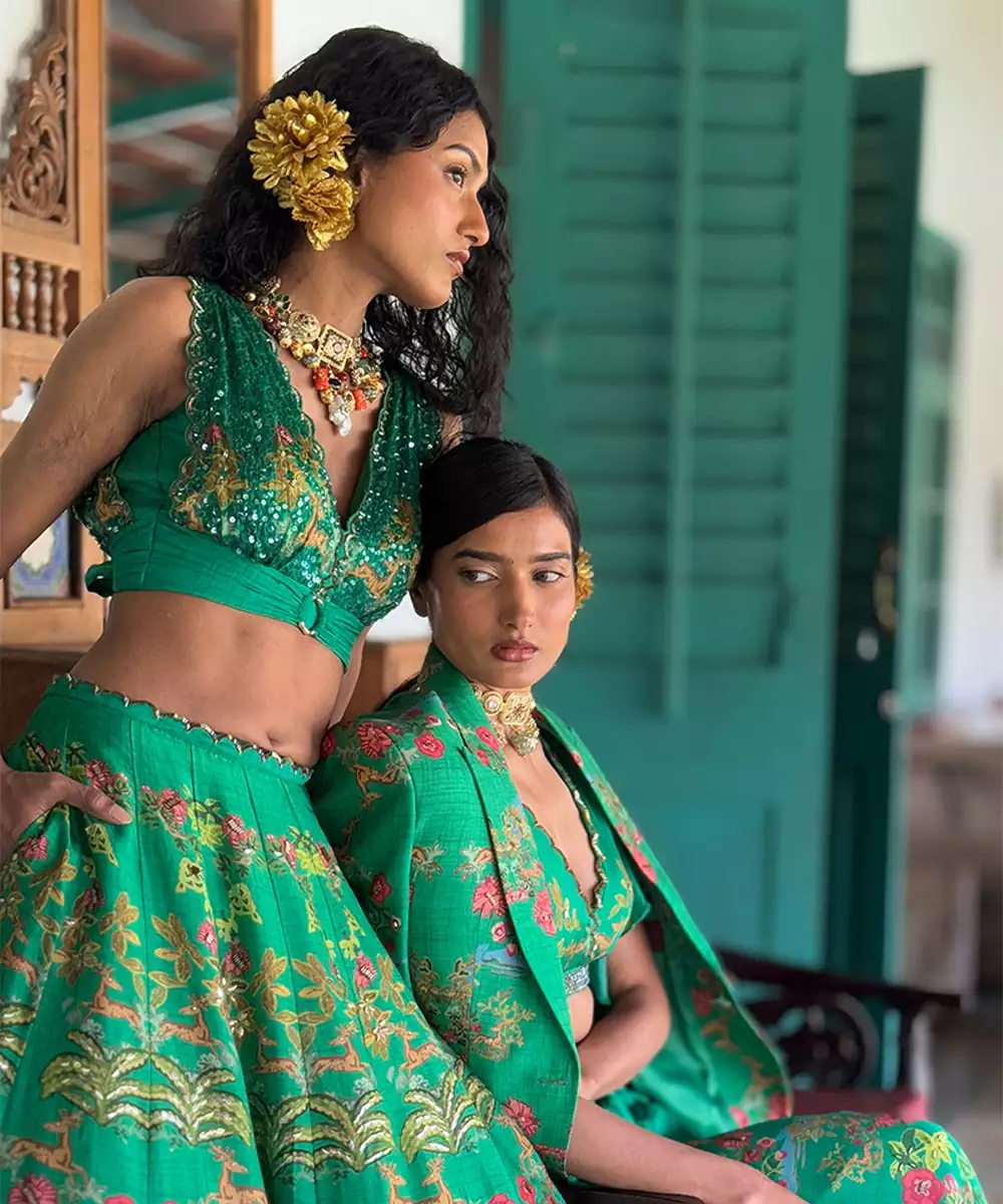 This Green Printed Organza Lehenga Set Showcases Vibrant Elegance With A Modern Festive Appeal. Crafted From Lightweight Organza Fabric, It Features Stylish Prints That Add A Lively, Graceful Touch. Perfect For Celebrations And Special Occasions, It Offers A Voluminous Silhouette, Airy Comfort, And Timeless Ethnic Charm.