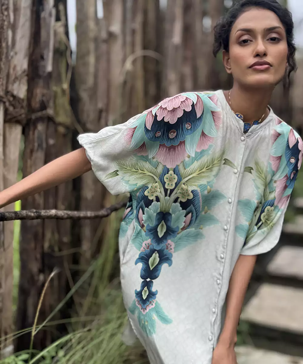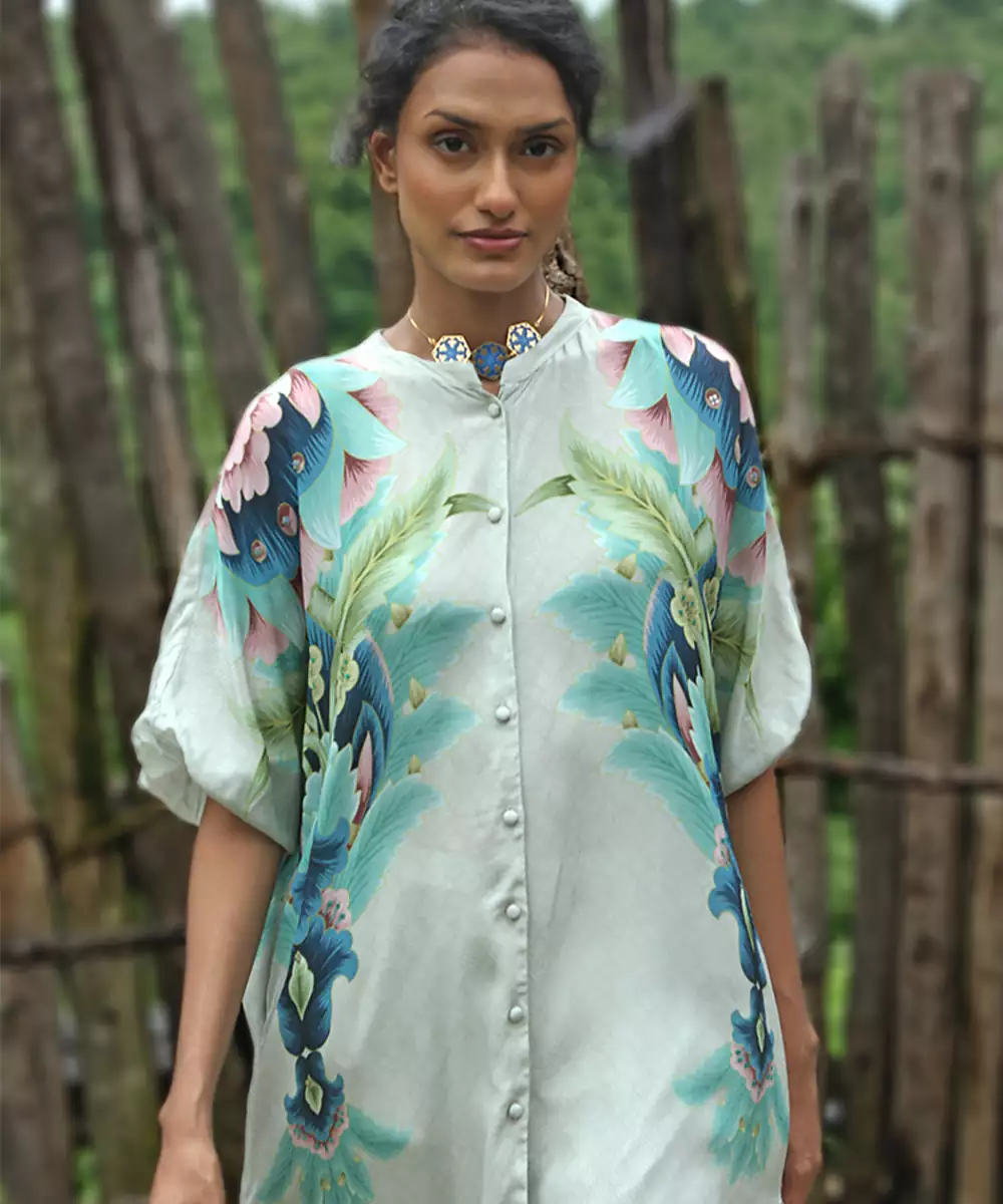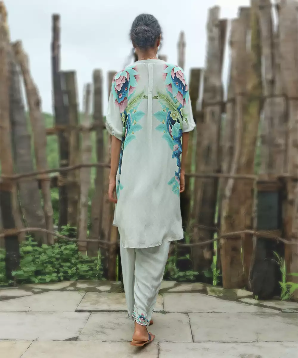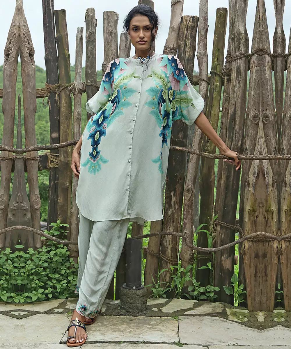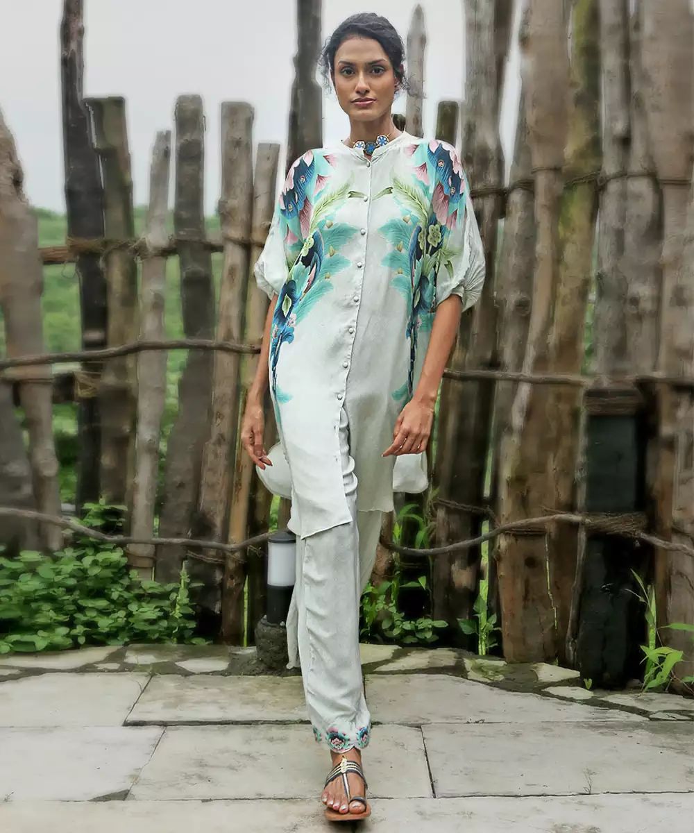This Grey Printed Crepe Co Ord Set Radiates Lively Charm And Contemporary Elegance. Crafted From Lightweight Crepe Fabric, It Features Vibrant Prints That Add A Playful, Stylish Touch. Perfect For Festive Occasions And Casual Gatherings, It Offers A Comfortable Fit, Graceful Drape, And Timeless Ethnic Appeal.