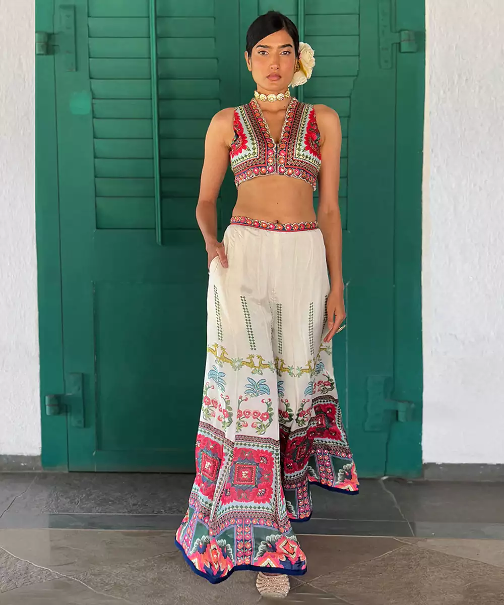 This Off White Embroidered Chiffon Co Ord Set Radiates Vibrant Elegance And Festive Charm. Crafted From Lightweight Chiffon Fabric, It Features Intricate Multicolor Embroidery That Adds A Rich, Stylish Touch. Perfect For Celebrations And Special Occasions, It Offers A Graceful Drape, Comfortable Fit, And Timeless Ethnic Appeal.