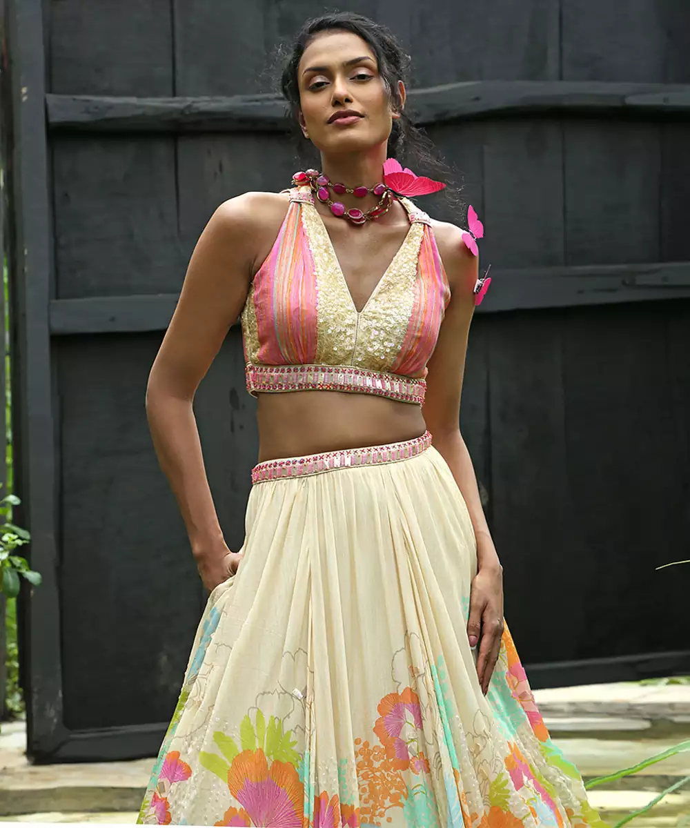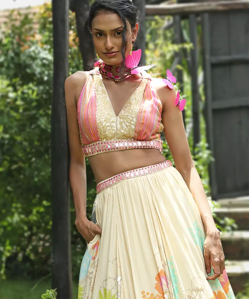 This White Printed Organza Lehenga Set Showcases Vibrant Elegance With A Modern Festive Appeal. Crafted From Lightweight Organza Fabric, It Features Stylish Prints That Add A Lively, Graceful Touch. Perfect For Celebrations And Special Occasions, It Offers A Voluminous Silhouette, Airy Comfort, And Timeless Ethnic Charm.