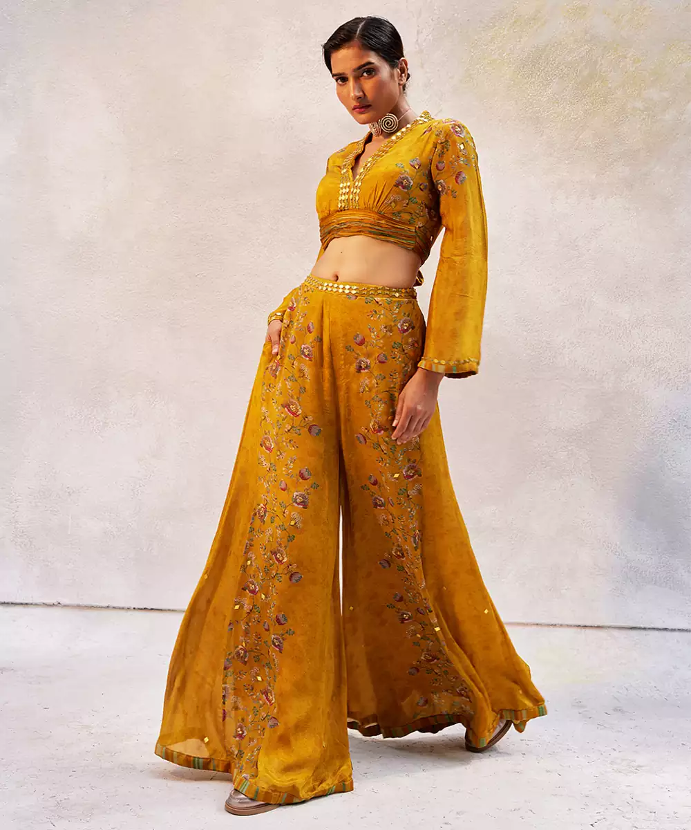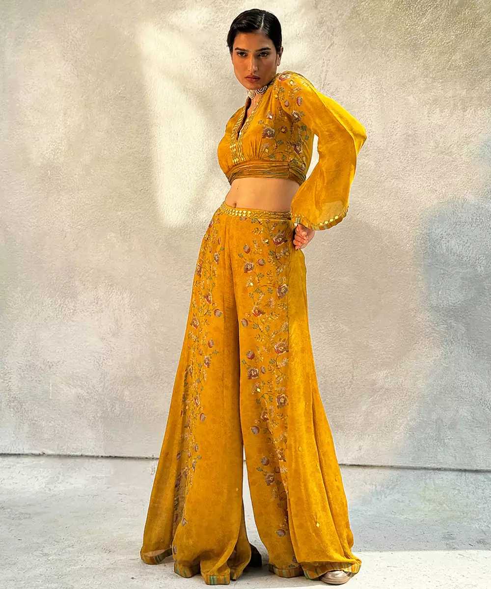 Yellow Printed Chiffon Co Ord Set