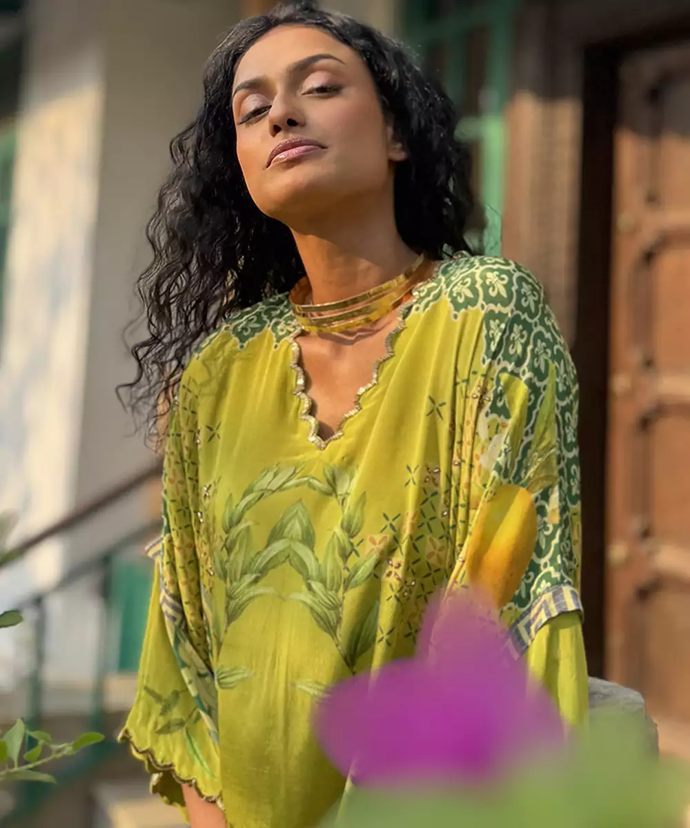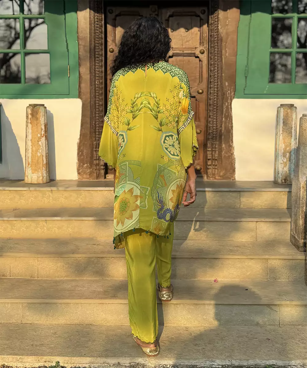 This Yellow Printed Crepe Kurta Set Exudes Fresh Elegance And Casual Charm. Crafted From Lightweight Crepe Fabric, It Features Vibrant Prints That Add A Lively, Stylish Touch. Perfect For Daytime Gatherings And Festive Occasions, It Offers A Comfortable Fit, Graceful Drape, And Timeless Ethnic Appeal.
