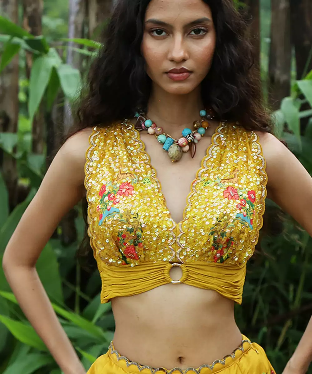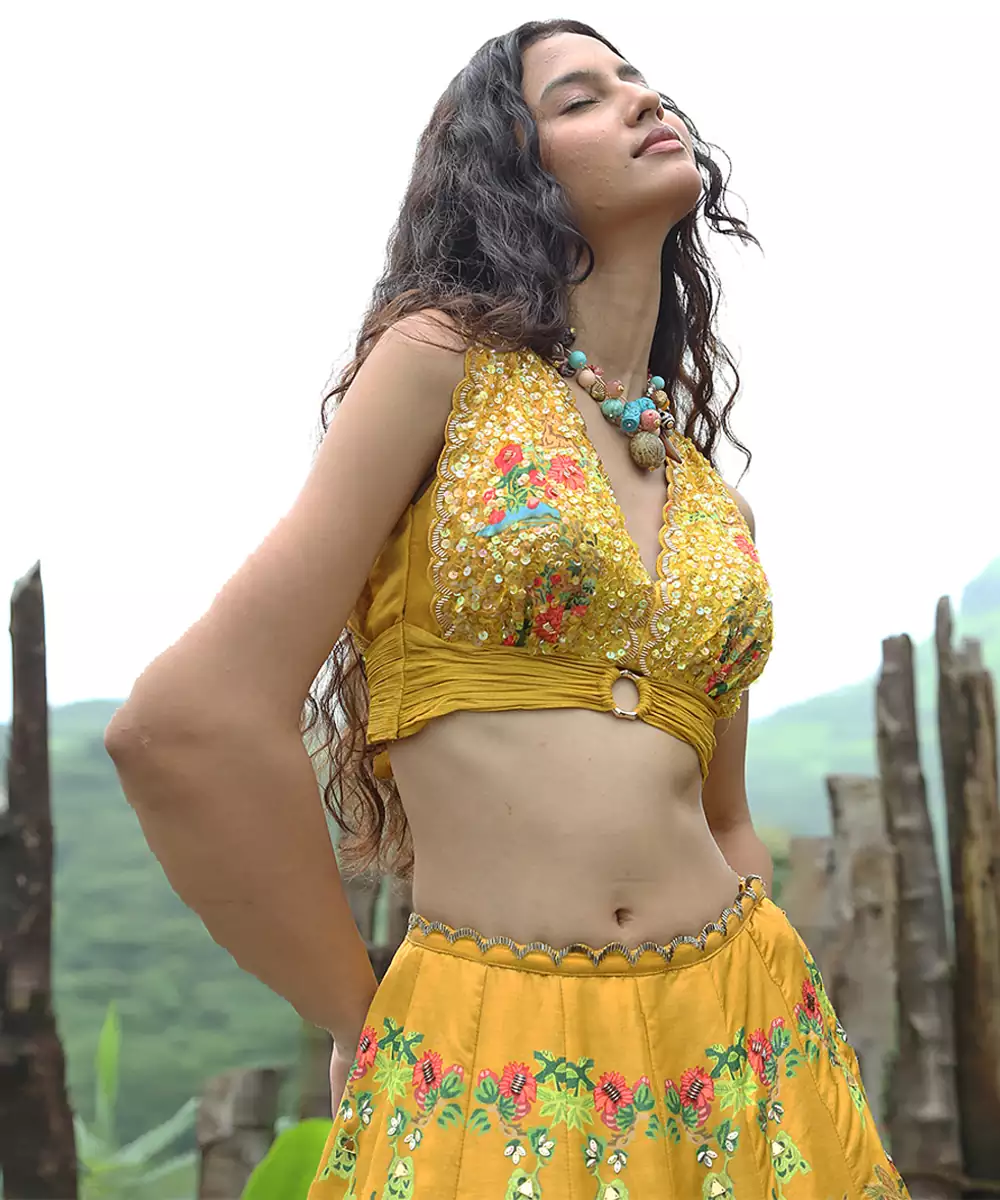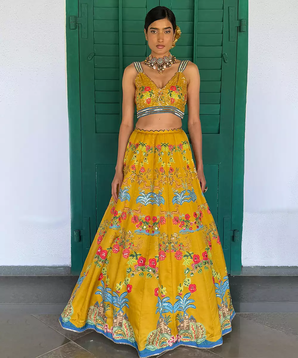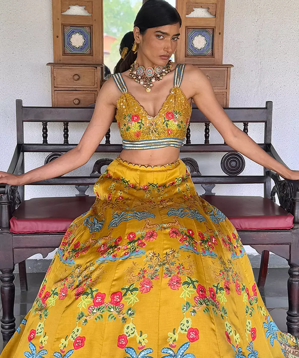 This Yellow Printed Linen Lehenga Set Reflects Fresh Elegance And Effortless Festive Charm. Crafted From Breathable Linen Fabric, It Features Vibrant Prints That Add A Lively, Stylish Touch. Perfect For Daytime Celebrations And Special Occasions, It Offers A Comfortable Fit, Graceful Silhouette, And Timeless Ethnic Appeal.