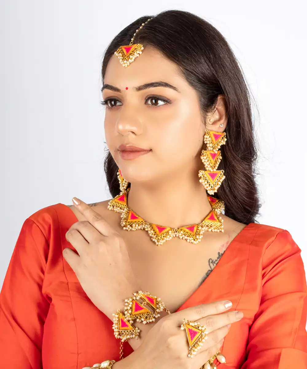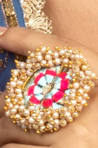 Celebrate Tradition With A Twist! The Marigold Bloom Ring Showcases Mustard Yellow Silk Thread With Hot Pink Accents And Delicate Pearls. This Ring Is Perfect For Mehendi Or Any Festival, Bringing A Bold, Colorful Touch To Your Ethnic Attire.